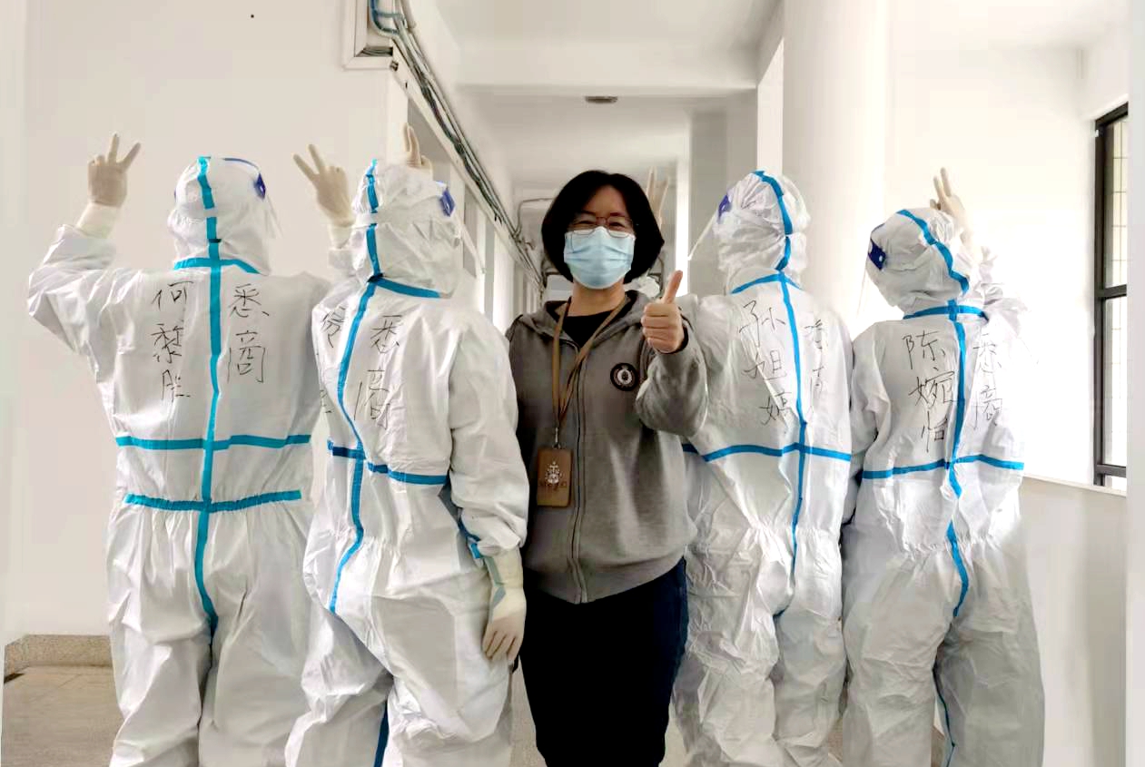 如果你以为这支由清一色教授、博士组成的高学历高职称志愿者队伍,所做仅仅限于运送物资,就太低估我们的老师了。他们送餐之余,分头跑遍了两栋寝室楼的角角落落,迅速测绘平面图,帮助楼管人员细化封控期间人员楼道卫生间、洗衣房、浴室等关键公共设施的轮流使用机制。他们借送物资上门的机会,与楼内的同学们亲切交谈,嘘寒问暖。信管系孙向阳博士看望了城信和管科方向的研究生。经金系计志英副教授到1号楼1楼送餐,把餐盒递到了自己所带的女研究生们手里,同学们看到自己的老师打扮成大白为大家上门服务,个个又惊又喜。计老师鼓励她们振奋精神,利用宝贵时间潜心学术,做出成绩。同学们接过老师们亲手递送的爱心便当,笑着保证一定保持乐观心态,决不荒废时光,继续努力学习,请老师们放心。