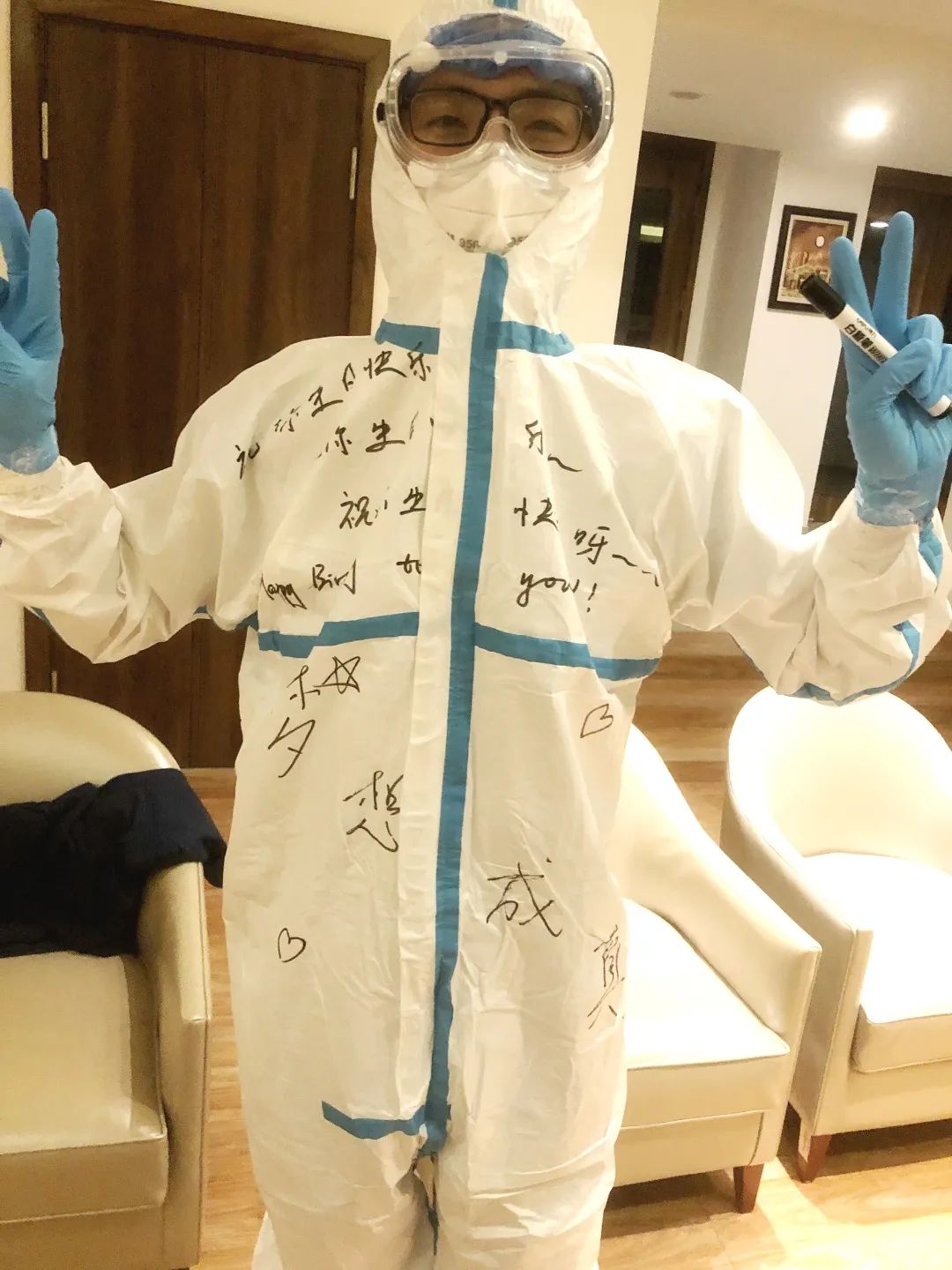 思政大课,我们共同成长 随着隔离点工作步入正轨,李书记强调要将思想政治教育放在首要位置,面向青浦和安亭两处隔离点学生开展系列思政教育的线上大课堂。老师、志愿者和同学们共同学习,大家在李书记讲述的“艰苦奋斗,共克时艰”主题课堂上学习用勇敢和乐观的信念战胜困难;在观看电影《上甘岭》的过程中感悟“上甘岭”精神“听党指挥、英勇顽强、艰苦奋斗、团结友爱、严守纪律”的内涵;在汪小帆校长《奋进新征程,建功新时代》主题讲座上坚定青年大学生为党和国家奋斗的目标。系列思政大课让大家共同成长,让同学们在隔离期间也保持心境开阔、情绪乐观。 共克时艰,我们彼此陪伴 除了日常工作的开展,“大白”和同学们更多的是互相陪伴。老师和志愿者们在“倒春寒”时提醒同学们关好门窗,多加衣服;告诉同学们:“有什么心情不好的,随时和我聊天哦”。同学们则经常绘画、作文,为“大白”们加油打气。 隔离期间,“大白”们细心注意到三位同学的生日即将来临,暖心的准备生日祝福和小卡片。其中一位同学在和导师线上交流时说:“在隔离点度过了难忘的19岁生日,打开门是大白们在工作服上写满的祝福,是手机轻声在走廊放着的‘和所有的烦恼说拜拜,和所有的快乐说嗨嗨’,是他们欣喜雀跃又努力压低音量的齐声‘生日快乐’”。彼此的关怀,亲切的陪伴,让青浦隔离点的每一位师生在感动中收获友谊,共克时艰的决心也更加坚定!