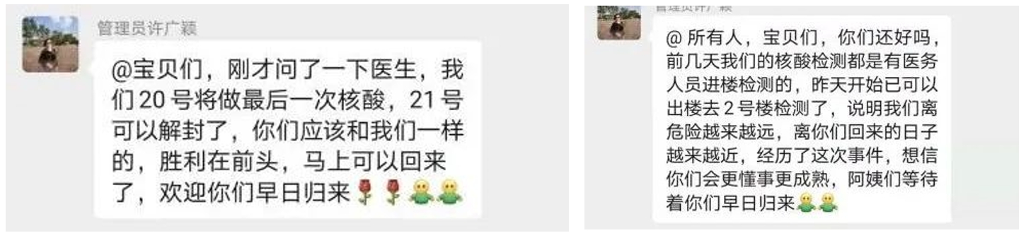 2022年3月14日 星期一 宿管阿姨在微信群关心学生情况,这些叮嘱使远在校外隔离点的我感受到了温暖与熟悉。像是家长惦记远行的孩子般,细腻却又深沉。“大白”在门外告诉隔离点的学生今晚可能会有暴雨,建议关窗。设想中的暴雨没有来临,但是这种关心和温馨,让我一夜安眠。