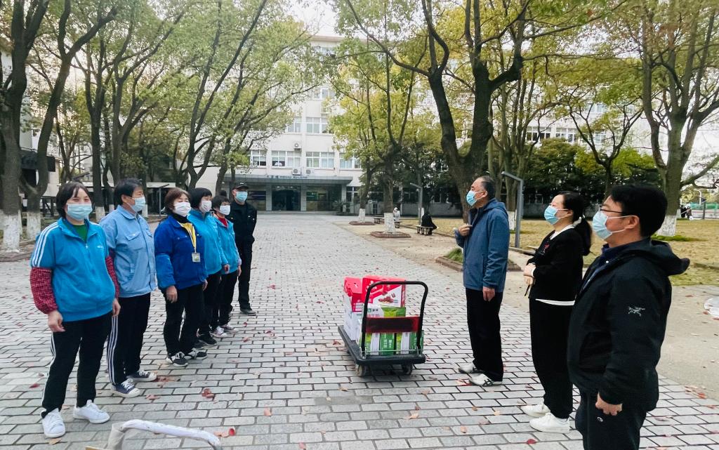 3月29日下午,学院党委书记李双、副院长方慧等看望慰问了驻守在我院新冠肺炎疫情防控一线的教职员工。学院工会主席吴明龙及学院办公室人员陪同慰问。 从3月3日学院按照上级要求实行校园封控管理以来,默默无闻坚持工作的学院后勤保洁、安保人员是学院最辛苦的群体之一。他们中的很多人,从3月3日坚持至今,在平凡的后勤岗位上任劳任怨、勇挑重担,保障了学院抗疫期间的卫生整洁和安全无虞。院领导首先看望了学院保洁阿姨和安保人员,对他们的默默坚守和辛勤工作表示诚挚谢意,称他们是守护校园的“无名英雄”,详细询问了他们个人的饮食起居及家庭目前的安排,叮嘱他们工作的同时注意自身的健康和安全防护,同时要求学院办公室做好这些工作人员的后勤保障,帮助他们解决“后顾之忧”。