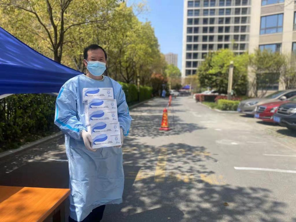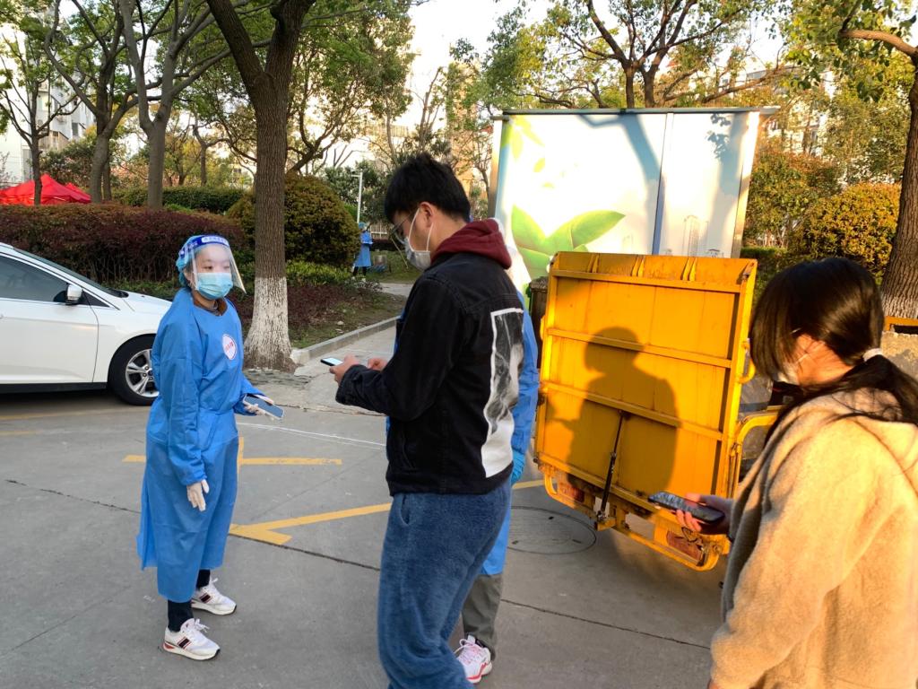 党支部书记裘剑伟老师和爱人苏佳卓老师发挥专业所长,对接楼内外籍人士,确保他们及时掌握社区防疫动态、物资采买等各类信息。裘老师主动承担起所住楼栋联络人角色,负责管理楼栋核酸检测、物资分发、垃圾清运、食品团购等工作;针对独居老人不会使用手机情况,协调楼内志愿者与独居老人结对子,一对一负责核酸检测和食品代买。夫妇二人为保证居民足不出户,在防护服极度有限的情况下,科学安排单元内志愿者工作;为保护志愿者和居民安全,在无法获取足够防护物资的情况下,自费购买防护服、酒精等防护物资累计千余元。