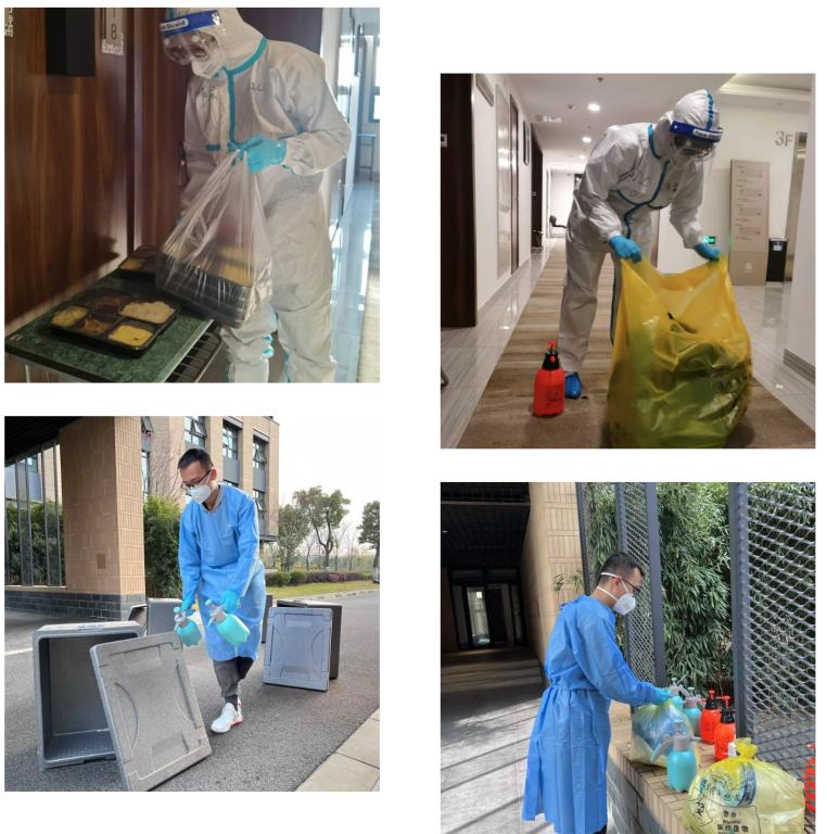 3月6日,嘉定校区发现一例检测结果异常。3月7日晚20:07,一则简短的信息让我激动起来——“需要一名女生做志愿者,在校外隔离点,要2周,有愿意的赶紧私聊我”。虽然第一个条件就不符合,但我还是抱着试一试的心态找老师请愿报名。等待的过程中,我在宿舍来回踱步,既担心错失这次机会,又想着出发前需要交接哪些工作。 3月8日早上8:00左右,我与其他志愿者一起参与集中培训,即刻变身“大白”,分批带学生乘车前往隔离点。一路上除激动外有一丝紧张,因为我不知道即将身处的工作环境是怎样的。因自觉经验不足、又身着白色防护服,所以在负责对接的同学面前,常自称“小白”。我同时参与机动、消杀、送餐、垃圾清洁、物资统计等多项工作,多重身份灵活切换,全天候在线。在“经验值”积累的过程中,也实现了从“小白”到“大白”的蜕变。在4月初负责开展的党组织生活会上,我同时作为志愿者代表分享了对“志愿精神”的看法——“志愿”本身来源于一种冲动,即愿意把自己的时间花在别人身上,哪怕所处的环境和即将面对的一切都是未知,却依然有信心真诚地迎接、克服它,并随之成长与升华。