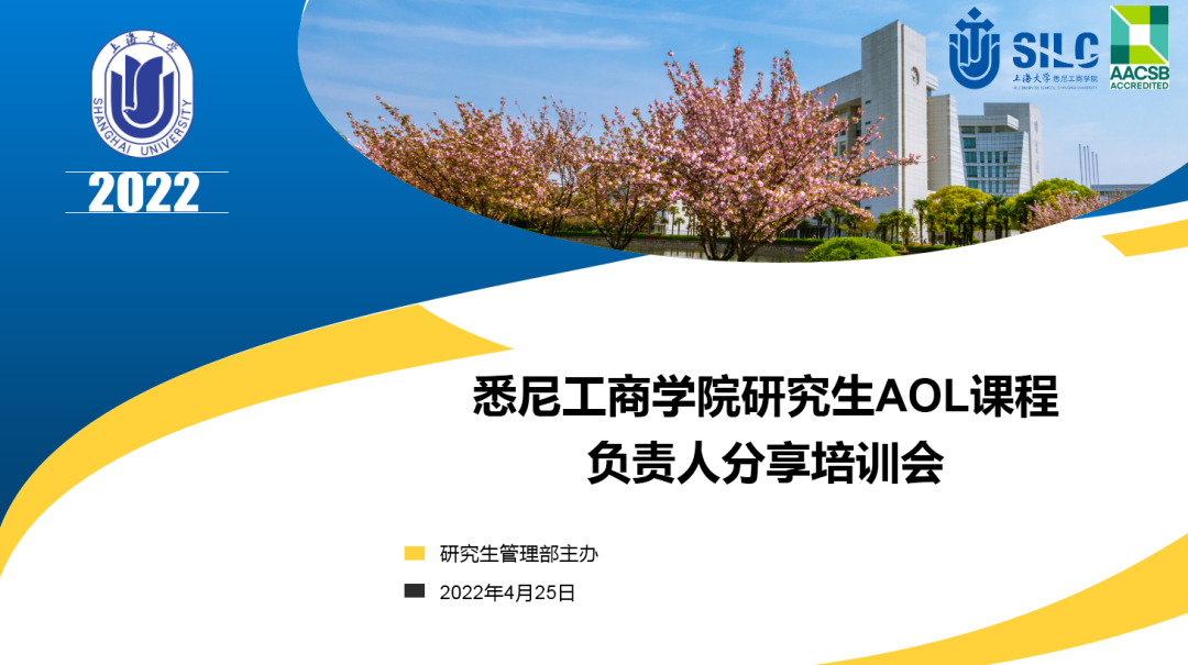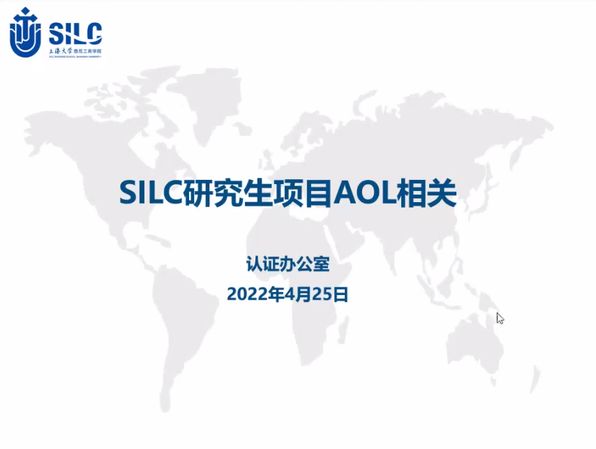 为更好地推进研究生项目AACSB(The Association to Advance Collegiate Schools of Business 国际商学院协会)认证工作,提升研究生AOL课程完成质量,4月25日下午,学院举行线上研究生AOL课程负责人培训会。本次会议邀请了经济金融系主任贾利军、财会系教师姜爱萍、认证办公室主任刘蕾等做经验分享,英国365上市公司副院长方慧、研究生管理部主任王少飞、认证办公室主管唐定强、各系部研究生AOL(Assurance of Learning 学习质量保障体系)课程负责人及研究生管理部教学秘书戴婕、范冰洁参加会议。