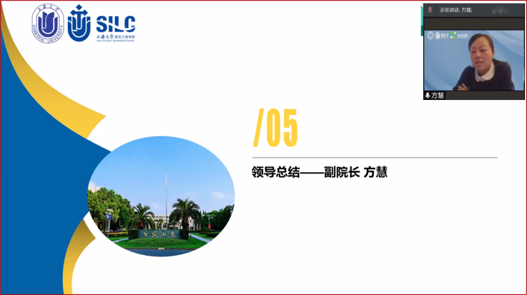 交流讨论环节,与会老师分别提出在AOL中遇到的问题和困难,项目负责人、认证办公室老师以及研究生管理部老师一一解答。 副院长方慧的总结致辞,充分肯定了开展本次交流培训会的必要性,并提出对研究生项目AOL工作的相关要求。在研究生教育大会后,学校、学院都对研究生教育质量提出了新的要求。研究生项目的AACSB认证既是挑战也是机遇,希望大家以此为契机,携手努力做好研究生课程质量建设,进一步提升研究生课程的规范性和质量性。学院也将按照AACSB认证要求,切实提升教学科研水平,将学院建设推向新的阶梯。