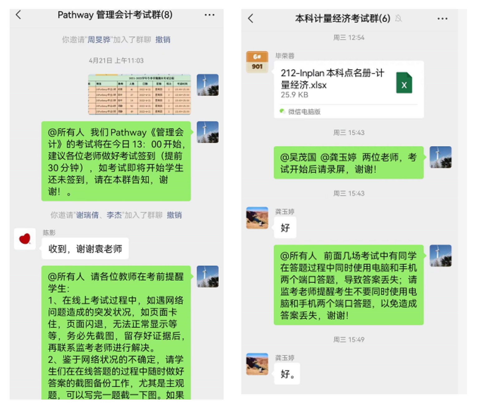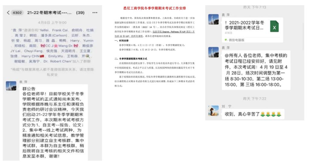 面向冬季学期任课教师,根据课程考核类型的不同分别建立集中考核工作群和自主考核工作群,将相关考试信息精准发放对应工作群,第一时间公布《英国365上市公司冬季学期末考试工作安排》。