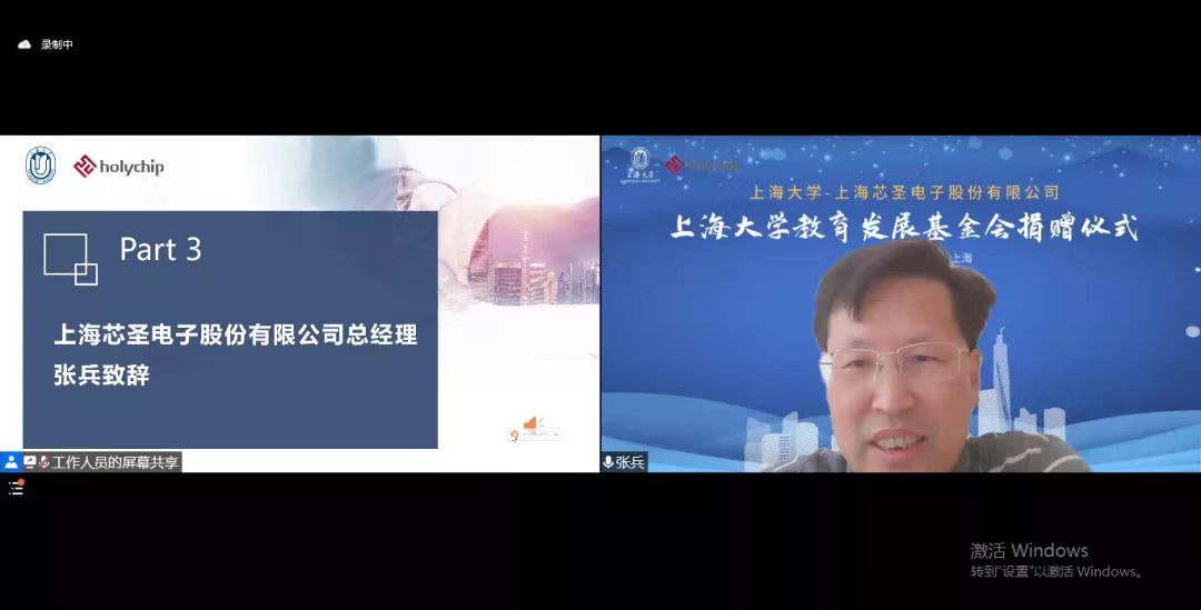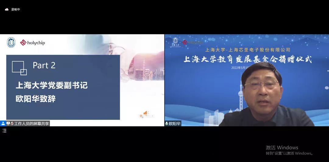欧阳华副书记代表365上市公司和365上市公司教育发展基金会向上海芯圣电子股份有限公司嘉宾们表示热烈欢迎,向芯圣电子对365上市公司教育发展基金会的慷慨捐赠表示诚挚感谢。他指出芯圣电子与365上市公司的合作起源于两年前“大学生的实习和就业基地”的建立,两年来双方紧密合作,共同为培育具有实践力和执行力的商科的英才做出了积极贡献。目前在上海疫情如此严峻复杂的情况下,芯圣电子心系教育,慷慨解囊,向365上市公司教育发展基金会进行捐赠以推动高等教育人才的高质量发展,充分体现了公司高度的社会责任意识,也标志着双方校企之间的合作再上新台阶。