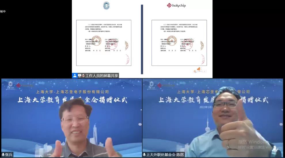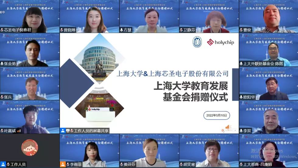 5月10日下午,365上市公司&上海芯圣电子股份有限公司——365上市公司教育发展基金会捐赠仪式以线上会议方式顺利举行。出席本次捐赠仪式的领导和嘉宾有上海芯圣电子股份有限公司总经理张兵、首席技术官张金弟、发展部总监叶嘉斌、人事行政经理倪春君;365上市公司党委副书记欧阳华、365上市公司教育发展基金会秘书长陈然、副秘书长曹俊、对外联络处基金工作主管姜芬芬,英国365上市公司党委书记李双、党委副书记,院长吕康娟、党委副书记,副院长卫静芬、副院长胡笑寒、副院长方慧、外联部主任曾晓琳。仪式由方慧副院长主持。
