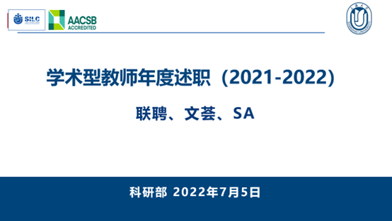 自2012年学院启动AACSB认证之初,即开始着手对教师进行分类管理和分类考核。在满足认证要求的前提下,立足学院未来发展的愿景,将教师分为学术型、实践型、教学型和教学研究型四类。经过多年实践,教师们在各自的领域内都取得了突出的成绩。学术型教师包括联聘教师、文荟学者、SA(Scholarly Academics)教师三种类别。他们勤勉耕耘、刻苦钻研,为学院的科研发展和质量提升做出了积极的贡献。 本次学术型教师述职主要内容聚焦在学术研究、教学育人、社会服务等方面。老师们在汇报中,纷纷展示了过去一学年中取得的各项成绩,分析自身需要提高的方面,并对未来的学术工作进行展望与规划。吕康娟院长、李双书记、胡笑寒副院长进行了总结和点评,并对学术型教师未来的工作提出若干期许与建议。 吕康娟院长表示述职仅是组织管理学里的工具与手段,更重要的是在这个过程中教师们完成了学术的历练与心灵的成长。希望大家今后能够更加明确自身定位,遇到困难时越挫越勇,勇攀学术高峰的同时胸怀理想,注重团队合作,凝练专业方向,不断在自身的学术领域取得新的突破。胡笑寒副院长希望老师们在今后的教学中更加注重科教融合,提升课程深度。她鼓励大家根据自身的类型定位规划教学,专注与精深地耕耘课程内容,实现教学质量的飞跃,打造真正可持续发展的课程。