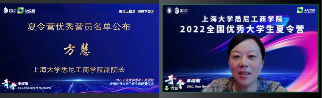 综合本次夏令营期间营员们整体表现,最终评出2022年优秀大学生夏令营优秀营员,并由副院长方慧公布了名单。最后,学院党委副书记、院长吕康娟发表总结致辞和寄语,她表示,悉商的优秀是藏在骨子里的,欢迎有志之士能来到悉商挖掘这份宝藏。吕院长与大家约定,希望同学们继续提升自己,并期待明年的9月与大家相会在英国365上市公司校园!