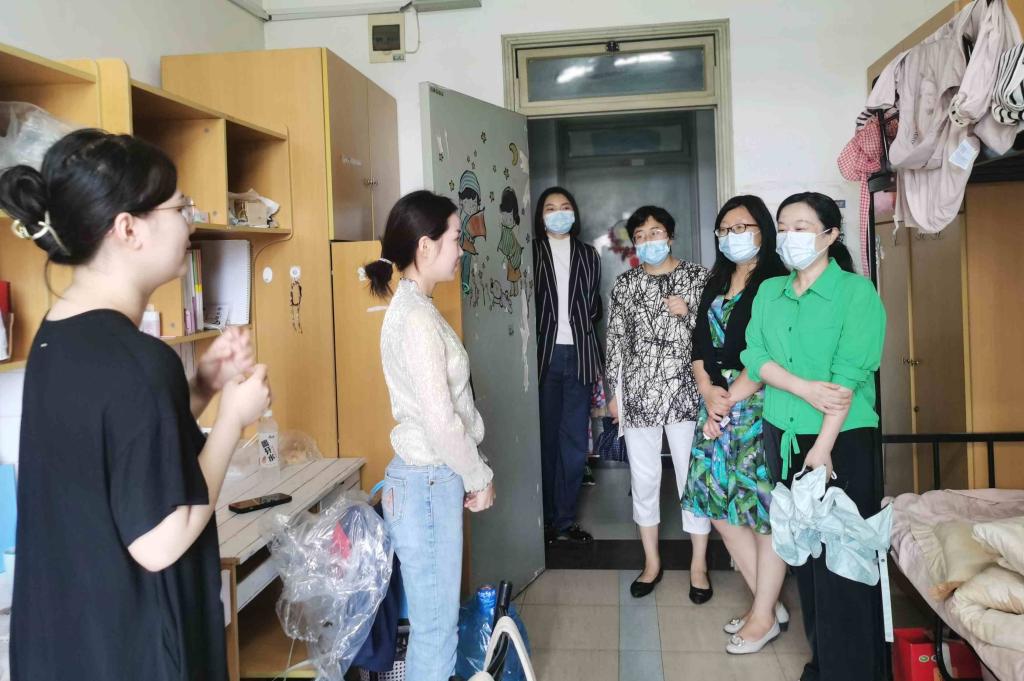 下午,学院副院长方慧,经济金融系主任、研究生兼职辅导员贾利军,研究生党总支书记、研究生管理部主任王少飞和研究生辅导员于子涵、范冰洁和殷嘉禾一起走进学生宿舍,关心同学们的入住情况,希望大家早日适应研究生的学习生活,树立目标、积极进取,脚踏实地、努力拼搏!