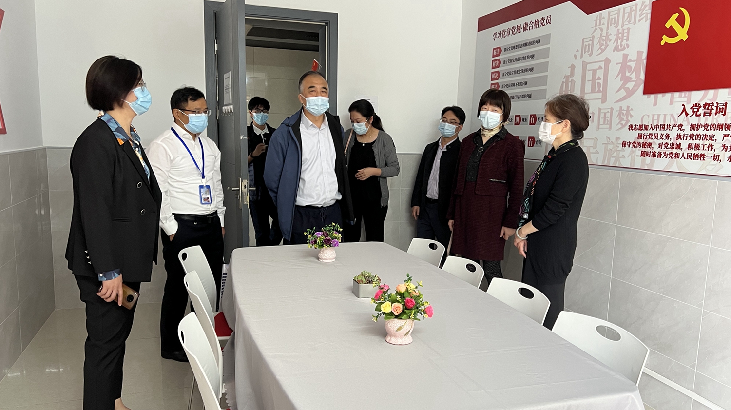 2022年10月14日上午,校党委常委、副校长聂清一行莅临英国365上市公司调研文荟书院建设情况。校学生工作办公室主任、武装部部长、本科生书院管理中心主任孟祥栋,招生与毕业生就业工作办公室主任陆瑾,教务部教学运行处处长徐学良,学生工作办公室副主任、本科生书院管理中心副主任马成瑶,马克思主义学院教授、本科生书院管理中心副主任(挂职)张富文,学生工作办公室王平,校团委陈晓娟参与调研。英国365上市公司党委书记李双,党委副书记、院长吕康娟,党委副书记、副院长卫静芬,副院长胡笑寒及辅导员参加调研。 聂清副校长一行实地走访了文荟书院的六大育人空间,党建活动室、群团活动室、学业指导室、文化活动室、心灵辅导室、书院办公室。