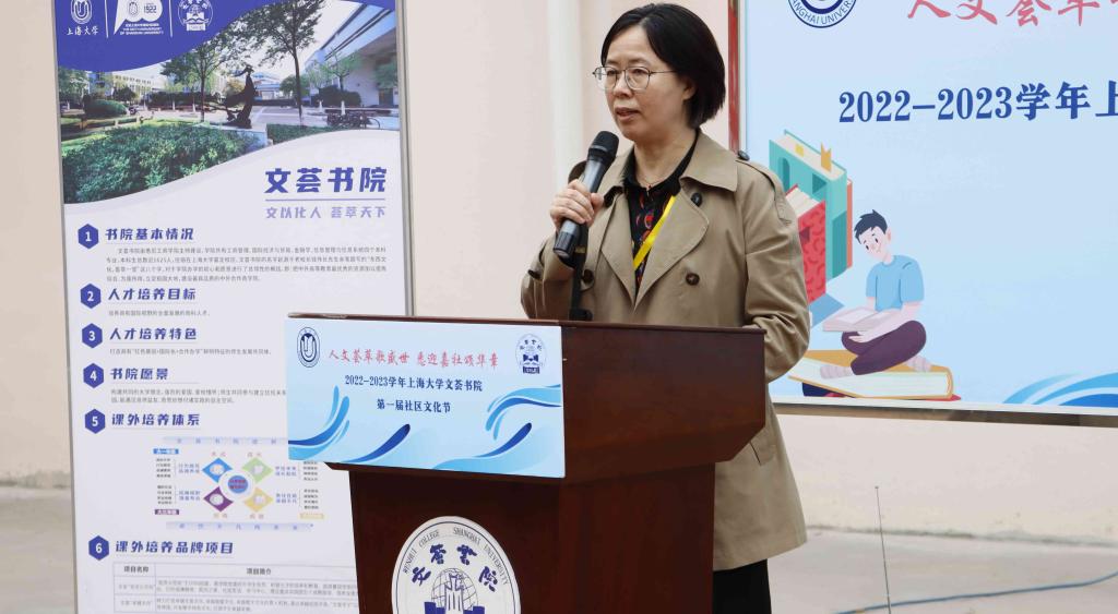 自管会学生代表发言 文荟书院学生自我管理委员会主任苏雨柠同学作为自管会代表进行发言。她强调了社区对大学生的培养和发展起到的重要作用,充实的社区活动是大学生良好生活习惯、昂扬精神面貌和高度政治思想觉悟的重要体现。社区文化节是加强学院思想政治教育与全面育人的重要创新。随后,她详细介绍了文荟书院学生自我管理委员会的组成架构和建设目标,表示学生自我管理委员会将在形式多样、内容丰富、交叉互动的学生活动中以“家文化”感召每一位同学,由内而外带动整个校园文化建设蓬勃发展,促进社区精神文明建设。 宣布社区文化节开幕和介绍活动安排