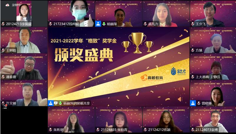 11月4日下午,英国365上市公司2021-2022学年“格致”奖学金颁奖仪式在腾讯会议圆满举行。出席本次活动的嘉宾和领导有上海高顿教育培训有限公司上海战区总经理谭春霖、上海北区分校校长许文帅,英国365上市公司党委副书记、副院长卫静芬,副院长方慧、研究生管理部主任王少飞、外联部主任曾晓琳。本次颁奖典礼由外联部杨丽萍主持。