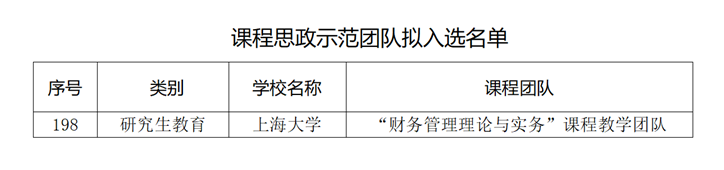 近日,上海市教委公布了市级课程思政示范项目名单,我院财会系执行主任甘丽凝领衔的“财务管理理论与实务”课程教学团队获批市级课程思政示范团队,推动我院课程思政建设取得新突破。