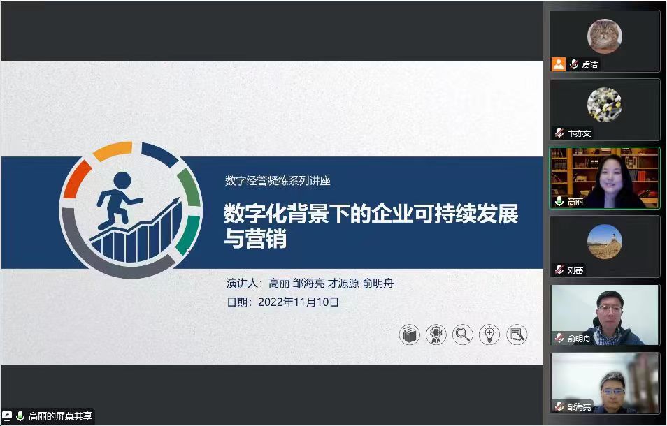 11月10日晚,学院创新管理部组织了第三场数字经管研究方向凝练交流活动。本次讲座围绕“数字经管研究方向凝练——数字化背景下的企业可持续发展与营销”的主题展开,由高丽、邹海亮、才源源、俞明舟老师主讲。院长吕康娟、副院长胡笑寒、教师王甄、陈军等及近百位研究生参加线上讲座,副院长卞亦文担任主持。 高丽老师首先回顾了改革开放以来数字化经济的发展进程,阐释了数字经济的定义以及人工智能发展的三个阶段。她结合数字经济带的很多业务模式、场景和体验的创新,探讨数字时代需要的人才特质,并解析了数字化背景下管理人才应该具备的能力。邹海亮老师以“数字化背景下企业的可持续发展“为主题,结合可持续发展的理念,探讨了数字化与可持续发展间的联系。并进一步分析了企业数字化转型的内涵以及转型对战略和赋能机制的影响。才源源老师就“数字化背景下可持续消费行为”的主题,结合“双碳背景”和“数字化赋能”的背景,探讨了数字化赋能低碳生活,介绍了消费者和品牌绿色价值共创的过程。俞明舟老师结合实际的工作和科研经历,分析了数字营销的原理和特征,并举例说明生活中的数字化营销方式。四位老师的讲座内容环环相扣,紧密结合“数字经济”、“可持续发展”、“数字营销”等时下热点概念,令同学们受益匪浅。 最后,高丽教授在总结中表示中国工业革命的四十年成果卓著,但我们仍面临加速推进基础产业信息化、淘汰落后产能、提升企业管理经营理念等重大考验,还须在“数字化转型“的领域继续深耕,并致力于培养相关领域的人才。本次研讨会给大家带来了学术上的碰撞、启发和崭新的思维视角,也将进一步促进学院数字化相关领域的学科凝练。 |
