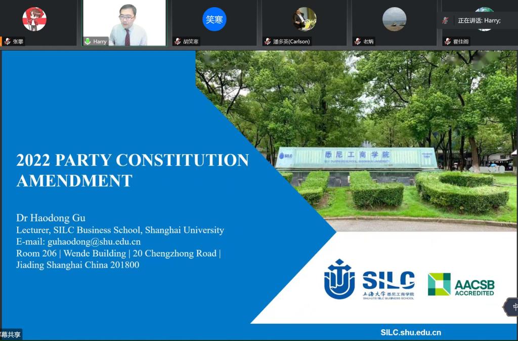 11月21日晚,工管系教师党支部举行学习领会二十大精神专题党课。党支部书记、学院国际部主任顾浩东围绕二十大审议修订的 《中国共产党章程》,结合学院国际化商学院的特点,组织支部党员同志专题党课学习,副院长胡笑寒参加支部党课学习并讲话。 党章是党的根本大法,是全党必须共同遵守的根本行为规范。每一位党员同志都要学习党章、遵守党章、维护党章,内化于心、外化于行。从党的二大制定首部党章到新时代二十大对党章的适当修改,从最初2300多字发展到如今的2万余字,党章的每一次修改都体现了党的理论创新、实践创新和制度创新的时代特色,都彰显了中国共产党人推陈出新、与时俱进的创造精神,都见证了党的不断成熟和壮大。顾浩东同志通过分析党章的修改之处,特别是二十大把党的十九大以来习近平新时代中国特色社会主义思想的新发展写入党章,把党的初心使命、党的百年奋斗重大成就和历史经验的内容写入党章,把全面建设社会主义现代化国家、以中国式现代化全面推进中华民族伟大复兴的奋斗目标写入党章,把党的十九大以来以习近平同志为核心的党中央坚持和加强党的全面领导、推进全面从严治党的新鲜经验写入党章等内容,进一步证明了党的二十大通过的党章修正案,充分体现党的理论创新、实践创新、制度创新和党的建设取得的新成果,充分体现党的二十大报告确立的重大理论观点和重大战略思想,对党的工作和党的建设提出新的要求。 胡笑寒副院长讲到,党的二十大把教育、科技、人才提到前所未有的高度。实施科教兴国战略,强化现代化建设人才支撑,进一步凸显了教育、科技、人才在现代化建设全局中的战略定位。党的二十大报告还指出,要推进高水平对外开放。可以看出我国将加快建设为具有高质量教育、科技创新和人才引领的强国,也将加快构建全方位对外开放新格局,迎来全方位现代化建设的迅速发展。 深化教育国际交流,构建人类命运共同体对于我们中外合作办学商学院来说既是一个挑战,更是一种机遇。她在近期调研走访上海几所高校的过程中,对“为我所用”感触颇深。在教育对外开放的新时代,学院在充分利用国际资源、充分挖掘人才潜力、创新学生培养模式等方面大有可为,要进一步以命运共同体理念推动教育国际交流,为发展具有“中国特色、世界水平”的现代教育做出贡献,这也是每一位支部党员要认真思考的教育的时代命题。 |