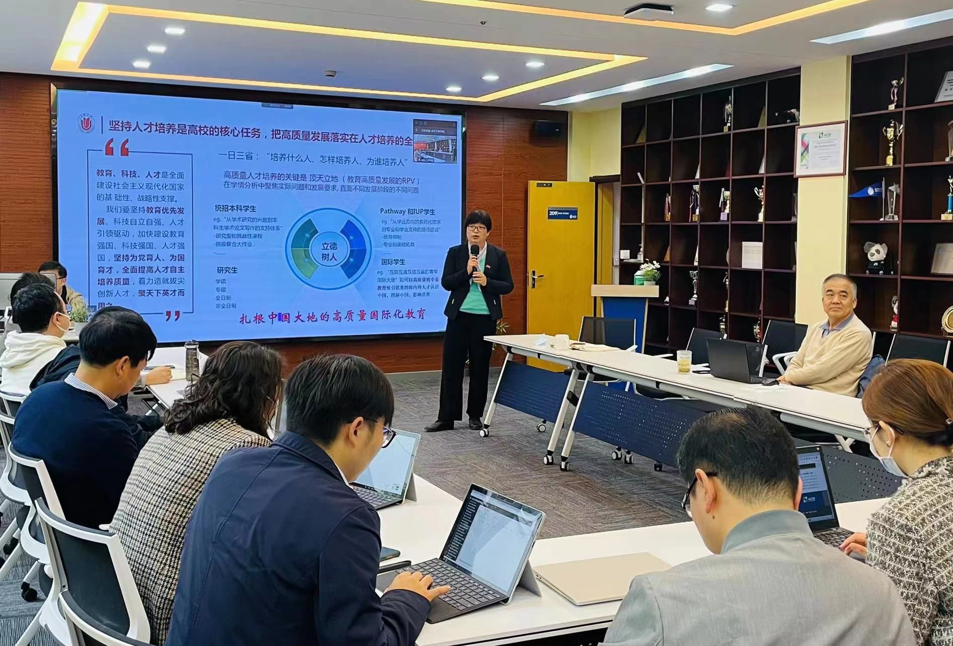 胡笑寒副院长从二十大报告“坚持教育优先发展、科技自立自强、人才引领驱动,加快建设教育强国、科技强国、人才强国”的论述出发,提示老师们牢记习近平总书记“培养什么人、怎样培养人、为谁培养人”的育人理念,坚持人才培养是高校的核心任务,把高质量发展落实在人才培养的全过程,结合学院四类学生的不同情况,在学情分析中聚焦实际问题和发展要求, 直面不同发展阶段的不同问题,创造扎根中国大地的高质量国际化教育新成就。