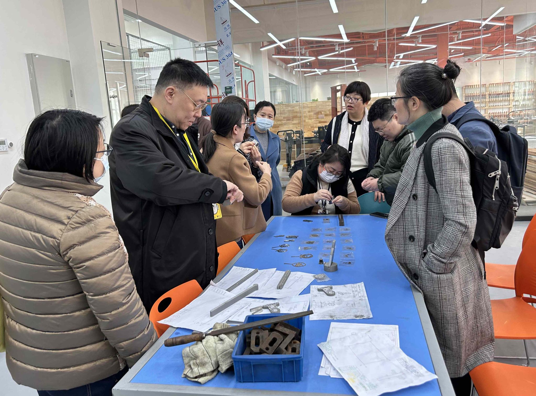 3月16日上午,副院长胡笑寒、副院长孙燕红(挂职)率学院十余名教师赴我校工程训练中心交流调研。 工训中心主任郭帅带领他们参观了工训中心文化园。文化园内展示着九十年代上大金工实习工厂曾使用过的刨床、铣床、磨床等大型金工设备,工程与文化相结合的艺术感扑面而来。走进工训中心,学生们正在进行各类工程教学课程体验。郭帅主任介绍了中心建设的概况,引导参观各个工坊的教学环境和创新实践工作室,观摩焊接工坊、木工坊、激光加工、3D打印、陶艺、铸造工艺、精密加工、线切割、机器人和人工智能技术等体验课活动现场。参访教师亲自动手体验制作活动,相互研讨如何让工程实训与课内外培养结合起来,激发了跨学科交叉、跨学科融合的深度思考。
