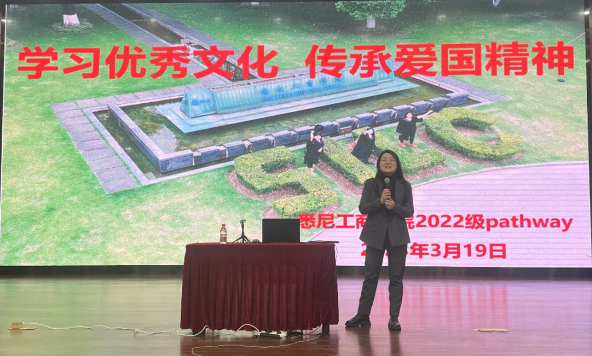 2022级UTS学士学位项目——“学习优秀文化,传承爱国精神” 2022级UTS学士学位项目辅导员郭美娟老师以“学习优秀文化,传承爱国精神”为主题,为大家带来爱国主义教育讲座。郭老师娓娓道来,讲述了博大精深的中华传统文化在历史长河中所发挥的强大精神力量,无论是国力兴盛之时,还是民族危亡之秋,一代又一代的优秀中华儿女总是肩负起传承中华优秀文化、发扬中华文明的大任。郭老师寄语在座同学们,作为新时代青年大学生要挺膺担当,深入学习和发扬中华优秀文化,讲好中国故事,传播好中国声音,弘扬爱国精神,为祖国的美好明天不懈努力。辅导员李铖艳老师从春季学期课程安排、学业要求、安全教育开讲,解答了新学期同学们常见的困惑和疑问,鼓励大家在新学期合理安排时间,以学业为重,守牢底线。
