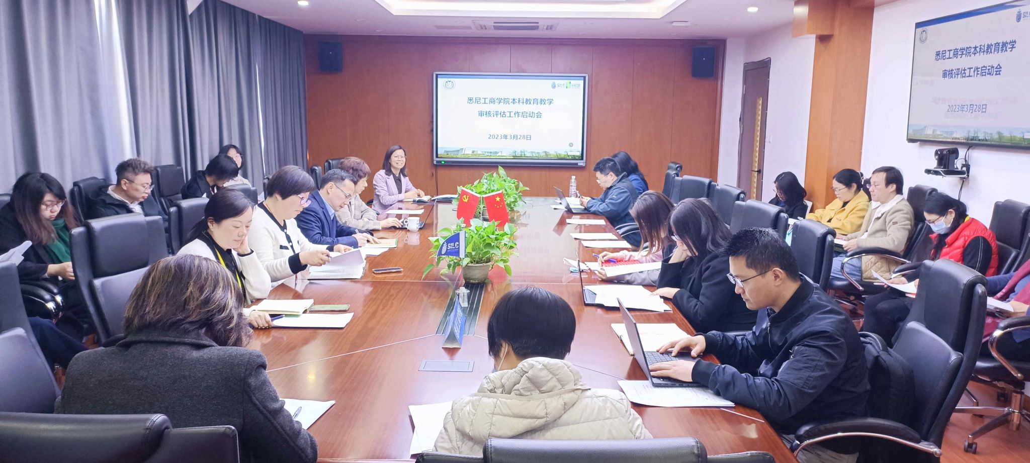 3月28日中午,英国365上市公司本科教育教学审核评估工作启动会在文荟楼409会议室举行,学院院长卞亦文、副院长胡笑寒,副书记、副院长卫静芬,副院长方慧、副院长(挂职)孙燕红及由学院各系部主任、骨干教师组成的评估工作组全体成员参会,会议由孙燕红主持。