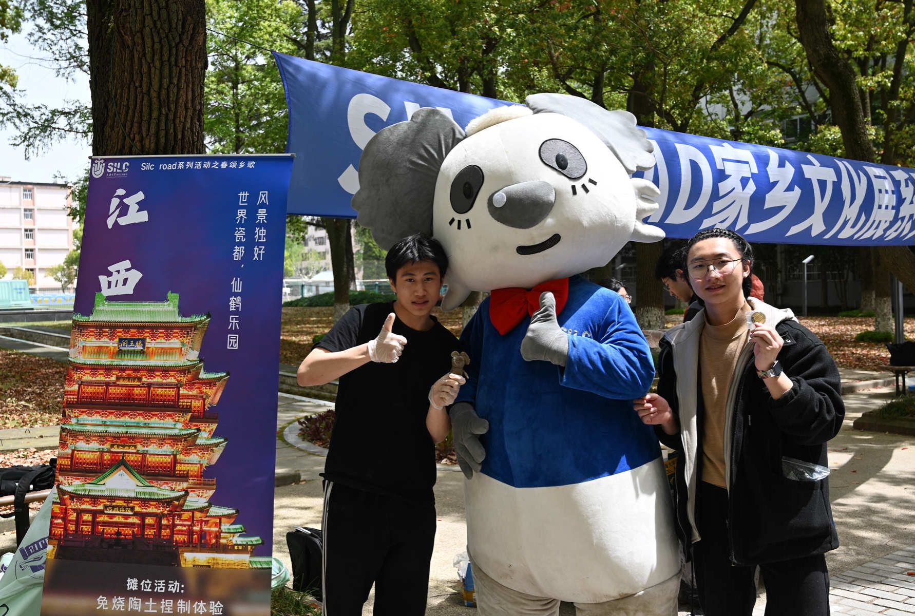 本次活动共设立国内8个地区的展台,分别是上海市、江西省、云南省、山东省、福建省、四川省、河南省以及东北地区。上海的“沪语挑战”、江西的“制陶体验”、云南的“傣族舞”、山东的“纸鸢祝福”、福建的“风景画挑战”、四川的“脸谱熊猫”、河南的“朱仙镇版画”、东北地区的“二人转”等展位吸引了众多师生前来打卡。活动刚一开始,集卡明信片就被一抢而空,同学们争前恐后地体验各展台的特色小游戏,场面十分火爆。