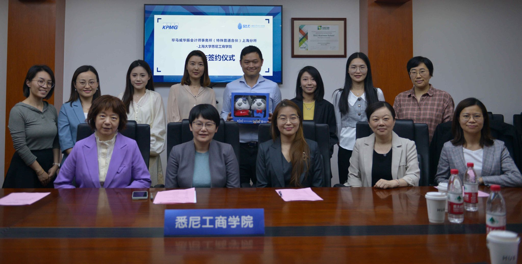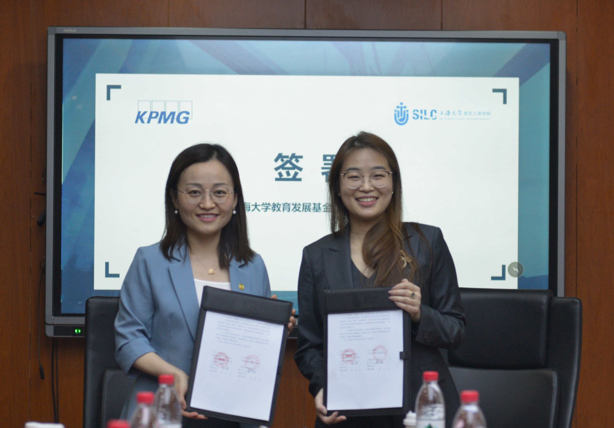 王文立和卫静芬分别代表毕马威和悉商学院签署《实习就业基地协议》。