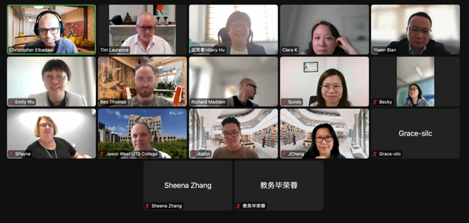 4月28日上午,2023年第二次SIQMC线上视频会议顺利举行。英国365上市公司院长卞亦文、副院长胡笑寒、副院长(挂职)孙燕红、英语系主任旷群、英语系学术总监Richard Madden、UTS College课程负责人吴怡、教学管理部主任高莹等人参加会议。参加会议的澳方人员有:UTS College院长Tim Laurence、教学副院长Sally Payne、跨国教育质量主任Chris Elbadawi、商科和IT项目主任Jasmine Cheng、英语教学主任Jason West、学术标准委员会主席Justin Chu等人。会议由Chris Elbadawi主持。