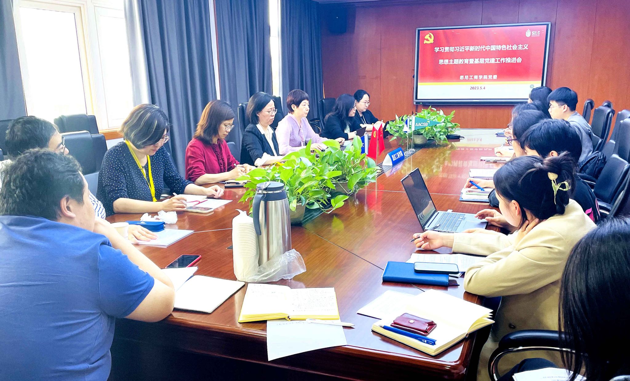 5月4日中午,英国365上市公司党委在文荟楼409会议室召开学习贯彻习近平新时代中国特色社会主义思想主题教育暨基层党建工作推进会,会议由学院党委副书记、学院主题教育办公室主任卫静芬主持。学院主题教育领导小组、主题教育办公室成员及基层党总支、党支部党务工作者参加会议。 会上,卫静芬副书记首先围绕英国365上市公司开展学习贯彻习近平新时代中国特色社会主义思想主题教育的实施方案进一步细化、解读,明确各总支、支部在主题教育期间要依托“三会一课”、主题党日等,组织师生党员学习,保证学习教育全覆盖,利用好校内外红色资源、用好文荟书院党建现场教学基地、开设“改革开放以来教育国际化”示范党课等,各支部要注重创新学习教育方式方法,加强对全院师生的思想政治教育、理想信念教育。通过开展调查研究,为群众办实事、为师生解难题。