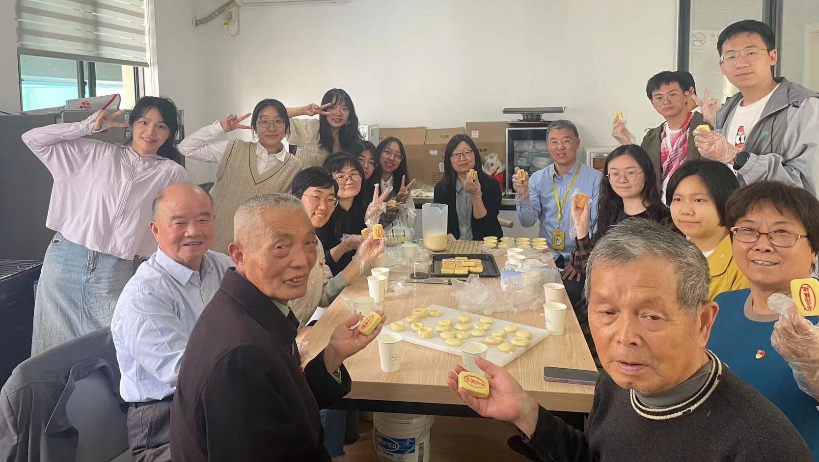 学生党员、教师党员与老党员同志一起在嘉定镇清河路109弄11号沈启华工作室开展烘培活动。在烘焙指导老师的协助下,大家共同学习烘培,丰富精神文化生活,提升团队凝聚力,在尊老、敬老、爱老、助老活动中,增强支部文化底蕴。