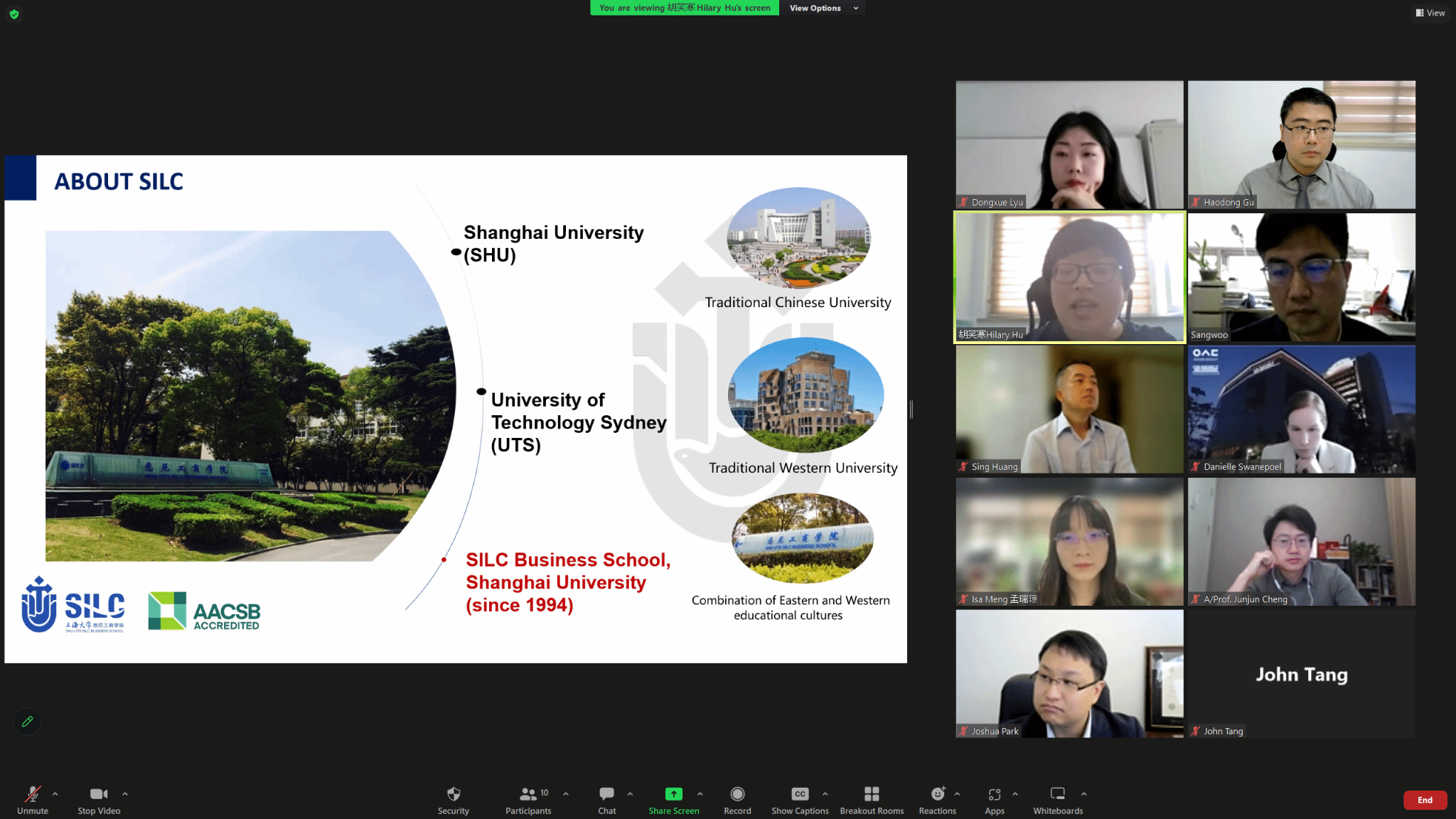 5月12日上午,学院与韩国又松大学Solbridge国际商学院举行线上会议。胡笑寒副院长、顾浩东主任、孟瑞琼副主任、唐定强、Solbridge国际商学院院长Joshua Park教授,副院长Chia-Hsing Huang教授以及其他相关负责人参加了会议。双方于2022年签订了合作备忘录。胡笑寒副院长和Joshua Park院长分别介绍了两所学院的基本情况和突出特色,双方就交换生项目和研究生项目合作进行了深入讨论和交流,均表示推动合作项目落地的意愿。 |