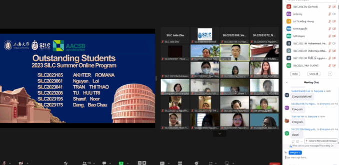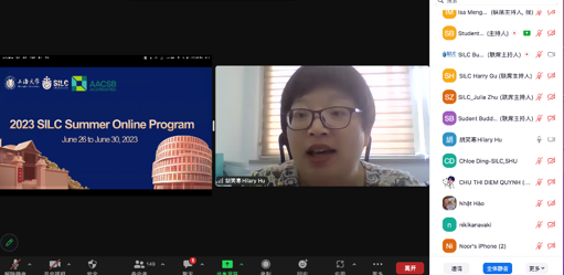 顾浩东主任宣布了本届暑期学校的6名优秀学生奖获得者,分别是: AKHTER ROMANA、Nguyen Loi、TRAN THI THAO、TU HUU TRI、Sharaf Noor、Dang Bao Chau,并对这6位优秀同学表示衷心的祝贺!来自孟加拉国的留学生Akhter Romana作为优秀学生代表,分享了她参加项目的体会。Akhter Romana是北京师范大学的在读学生,她非常感激有机会参加今年英国365上市公司线上的暑期学校。她提到,过去一周中,她学到了很多关于中国经济、历史和文化的知识,和同学们共同探索了许多话题,比如农村工业化、房地产发展领导力以及中国的社会保障体系,还了解了中国的创新精神和丰富的历史,独特的文化实践,以及关系的概念。她表示,这次的项目经历是非常宝贵的美好回忆,伴随她很多年。 来自英国伦敦国王学院的Sharaf Noor同学提到,她很感谢英国365上市公司精彩的暑期课程。短短五天的课程涉及了中国的商务礼仪、话语方式和文化关系。作为一个没有在中国学习过、对中国商务课程不太熟悉的外国人,她对这些主题的了解非常感兴趣。此外,认识和讨论中国的媒体市场也非常有帮助。中国拥有非常先进的技术,并且在不断发展。了解当代社会中媒体的力量对于我们充分利用影响大众企业和商务的新技术非常有用。通过本次暑期课程,她对了解中国文化和中国的商业运作模式产生了更加浓厚的兴趣。其他没有机会发言的同学,也在对话框中分享了他们的体会。 海内存知己,天涯若比邻,通过本次项目的顺利开展,助力广大国际学生对SILC有了进一步的了解,对中国有了更清晰的认识,SILC欢迎更多国际学生加入学院大家庭,共同开启国际朋友知华友华、国际合作的时代新篇章。 |