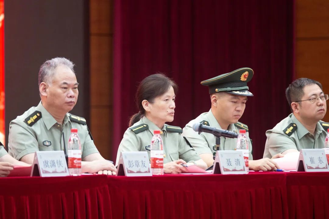 崔东发表讲话。他强调,军训是大学生活中一次独特而宝贵的经历,它能够培养学生们的纪律观念、团队合作精神和意志品质。通过严格的训练和丰富的军事教育,同学们能够锻炼身体,提升综合素质,增强国防意识和爱国情怀。他鼓励同学们积极投入军训,以饱满的热情和积极的态度参与训练,克服困难和挑战,并且只有在实际的训练中才能真正感受到军人的职责和担当,通过与教官的互动和学习,同学们将从中受益匪浅。 聂清发表讲话。她首先向中国武装人民警察部队表示崇高的敬意,并对武警上海总队执勤第二支队全体官兵表示诚挚的感谢和热烈的欢迎,希望双方能够继续保持良好的合作关系,顺利完成今年的军训工作。她强调军训可以提升学员的爱国情怀、国防意识、意志品质和身体素质。她鼓励同学们以军人的标准要求自己,将军训与国家使命和全面建设社会主义现代化国家的战略要求相联系,学习知识,磨练意志,努力成为勇于担当建设新时代中国特色社会主义重任的新青年!最后,她预祝学员们顺利通过为期两周的军训,锻炼意志,展现威武雄风和飒爽英姿。