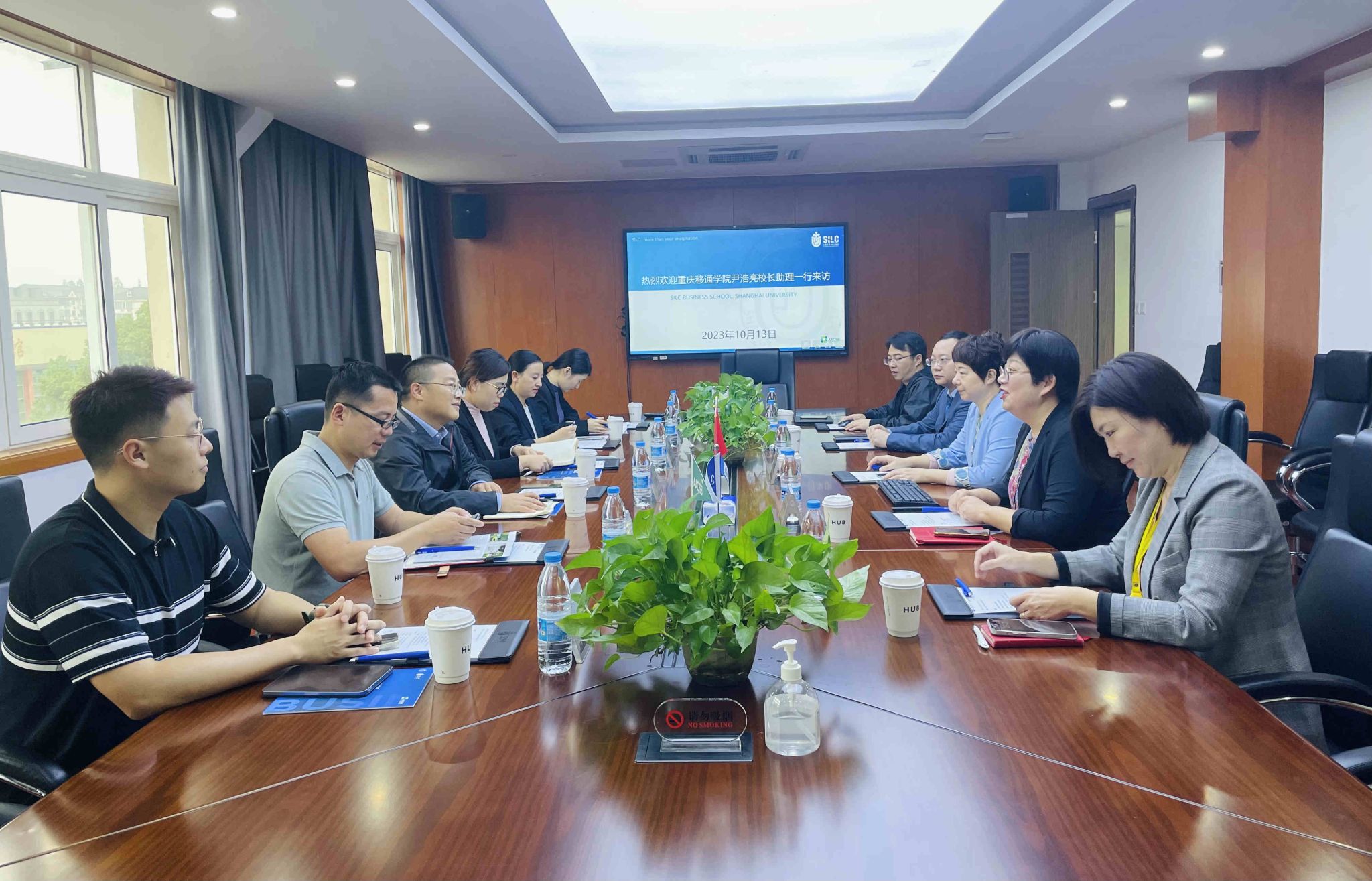 10月13日上午,重庆移通学院校长助理、德国工程学院院长尹浩亮一行来访调研。同行的有德国工程学院副院长侯宇晶、副院长李伟光、教研室主任谭劲秋、教研室主任王琥、学生工作办公室主任王媛媛。我院党委副书记、副院长卫静芬、副院长胡笑寒、副院长蔡震尧、教学管理部主任高莹、学生工作部主任吴明龙等在文荟楼409会议室接待了来宾。