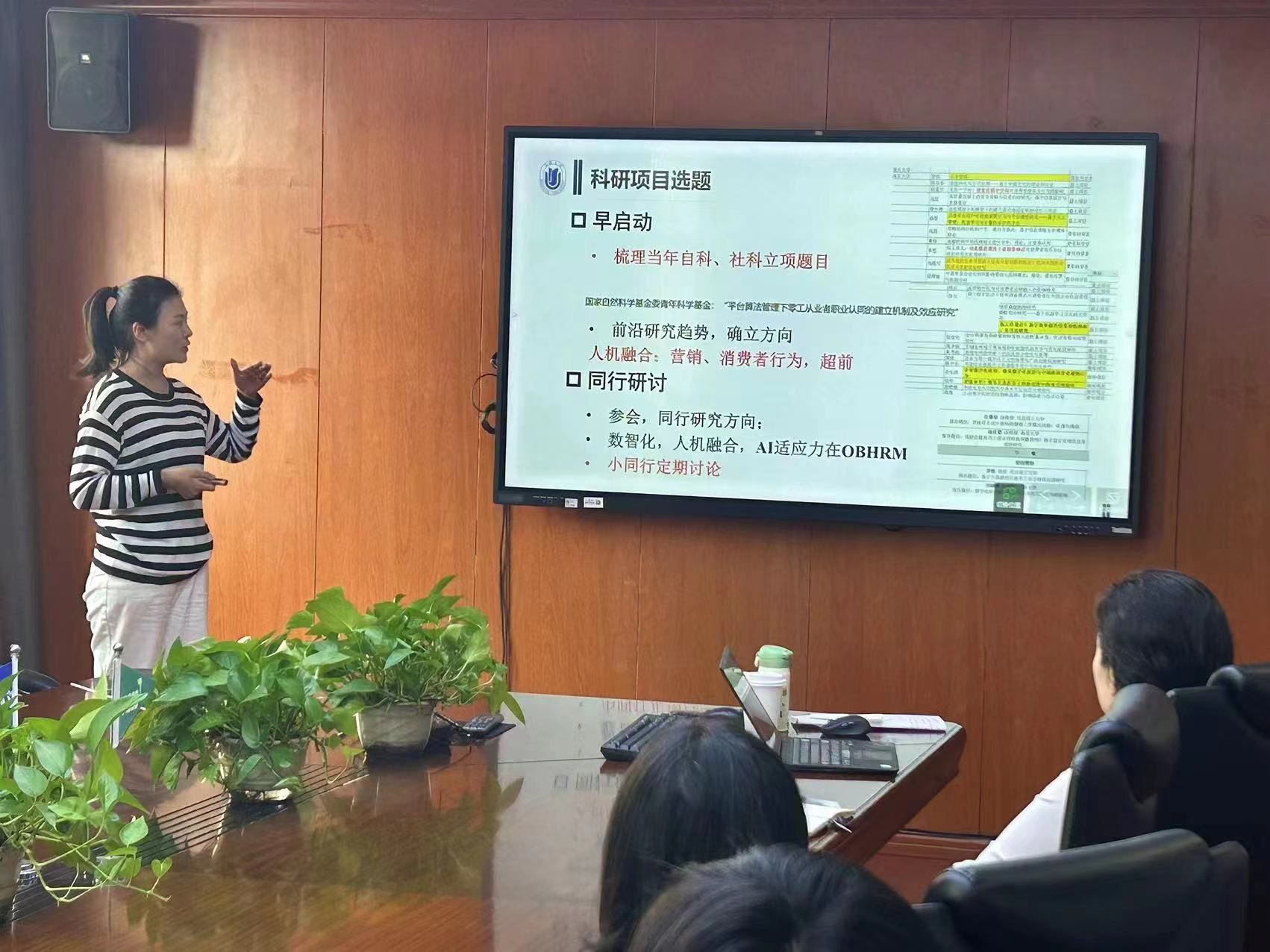 获得2023年度国家社科一般项目立项的贾利军、陈跃刚两位老师和获得2023年自科青年项目立项的肖璠、梁冰倩两位老师先后分享了经验。贾利军老师强调了在科研中扩展研究议题和明确问题陈述的重要性;陈跃刚老师分享了其在日常生活中发现感兴趣的研究问题并以积极态度应对项目申请的经历;肖璠和梁冰倩老师则结合自身申请经验,强调了在申请书中提高创新性与图文并茂的必要性,以及项目选题的关键性。