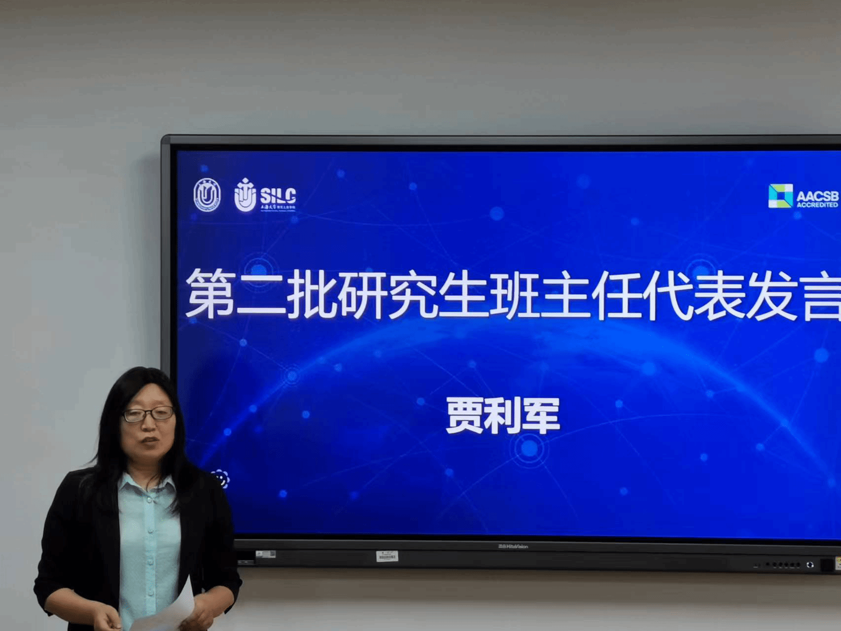 2023级非全金融班班主任贾利军作为第二批研究生班主任代表发言。她指出,研究生班主任在学业指导、班风建设和实践竞赛等方面发挥着重要作用。在接下来的工作中,她将进一步加强与导师和学生的沟通,鼓励研究生参与学科竞赛,助力学生更好地实习、实践和就业。