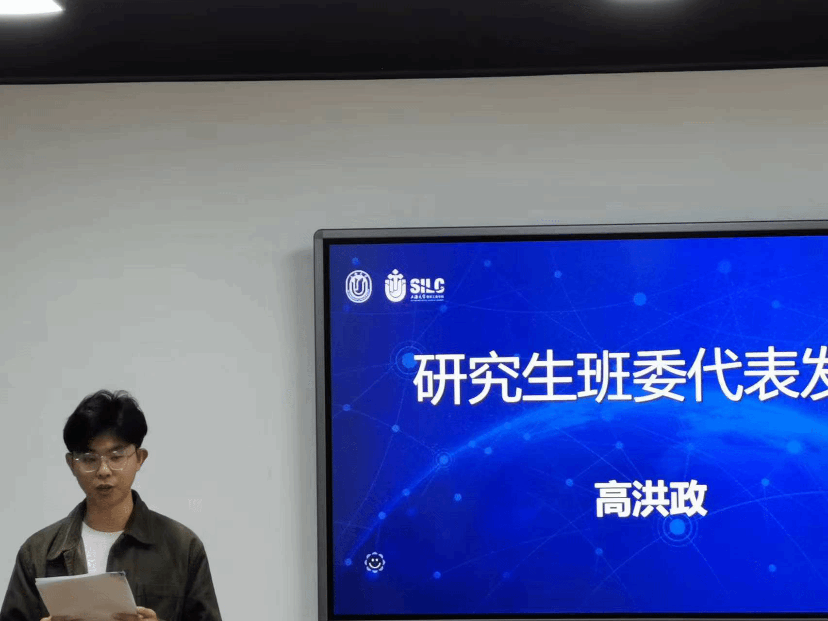 23级管理学研究生班班长高洪政代表班委发言,表示将积极组织班级活动,助力同学融入集体,提供多样的学术交流、文体活动与公益活动机会。同时,将配合班主任和辅导员做好班级建设,树立良好班风,努力建立“乐学苦思,敏锐创新”的新时代优秀班集体。
