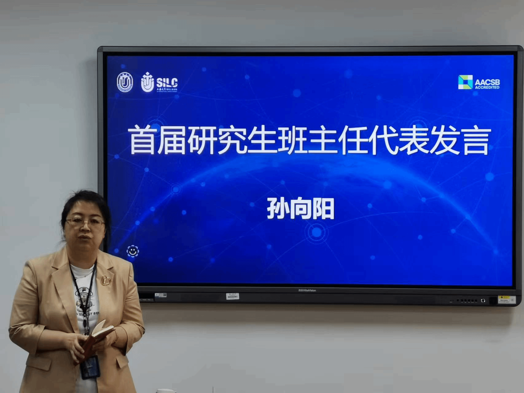 首届研究生班主任代表孙向阳发言。她强调,班主任在帮助学生适应学校生活、提高学习成绩以及融入专业等方面发挥着重要作用。希望班主任、任课老师和辅导员之间加强沟通与合作,共同商讨班集体的建设和发展规划。同时,要及时解决学生在学习和生活中遇到的困难与挑战,关心研究生的个人发展。