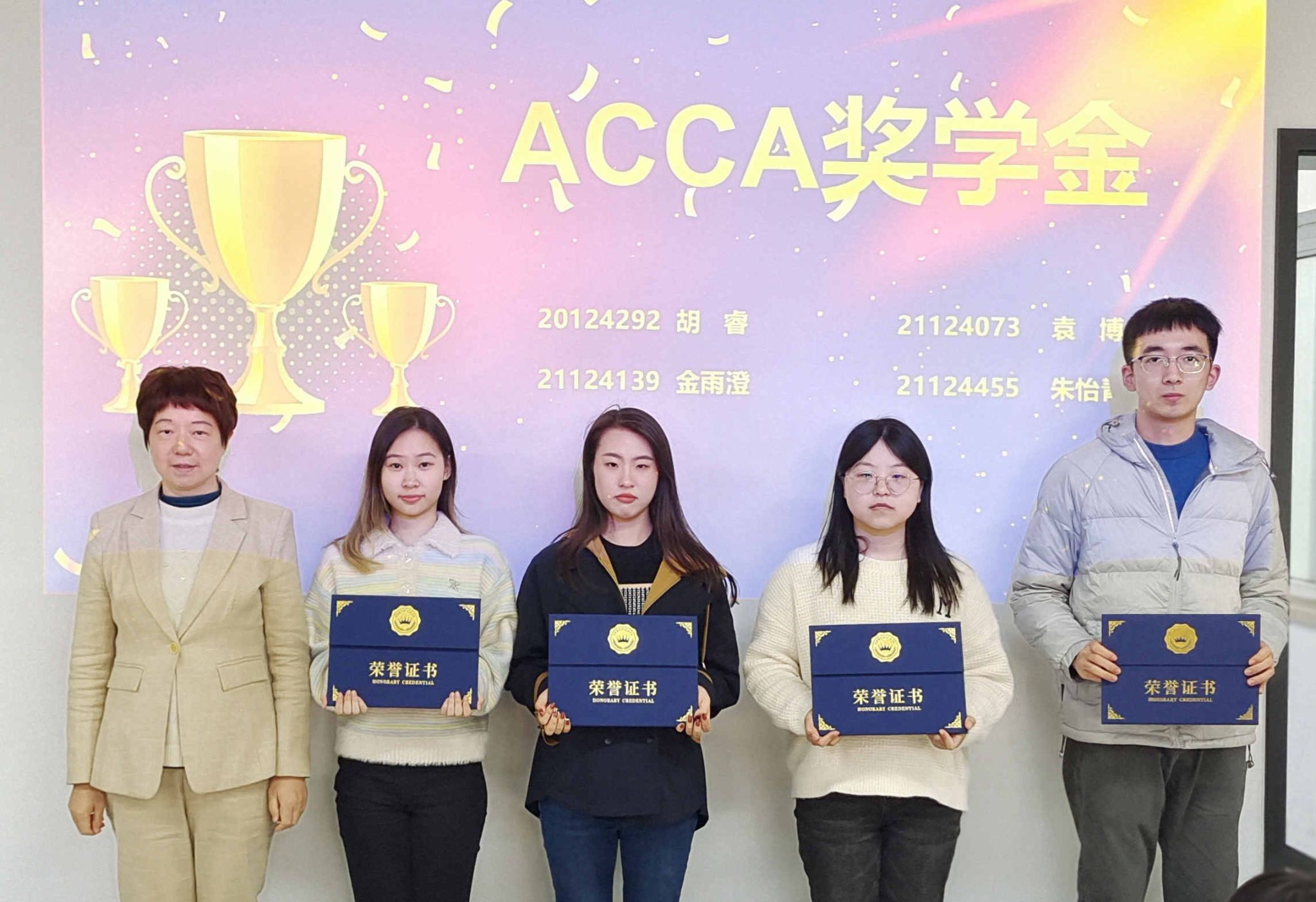 颁奖环节,卫静芬宣读获得2022-2023学年“格致”ACCA奖学金的学生名单,并为获奖学生颁奖。王屹宣读获得金融奖学金的学生名单,并为获奖学生颁奖。孙超宣读获得CPA奖学金的学生名单,并为获奖学生颁奖。