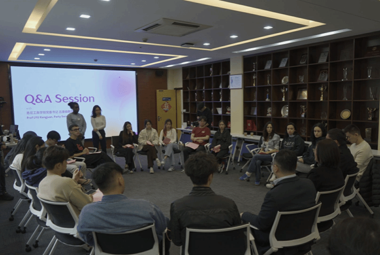 金融专业研一同学Maria的主持风格轻松自如,开场的两段中文绕口令迅速让大家消除了陌生和拘谨。接下来,大家和吕书记面对面,就同学们感兴趣的话题进行了充分的交流。这些话题囊括课堂内外和校园内外等各个方面:有的同学对课程计划提出了建议,认为课程中可以加入更多的和服务业相关的内容。有的同学提出,希望能够参加更多的实地考察和参观活动,了解行业真实情况。还有些同学希望能够在寻找实习和工作机会方面获得一些建议。