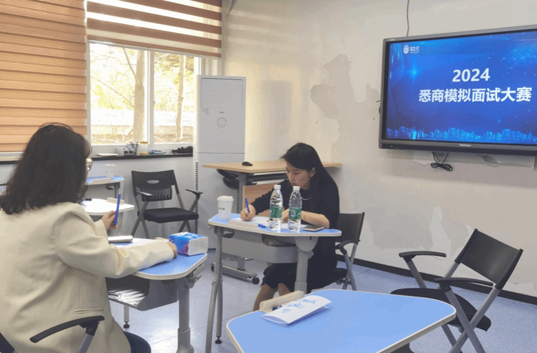 朱慧瑜首先为参赛同学介绍大赛赛制:大赛分为两轮,单面和群面。面试结果均采用1-5分制的打分模式,和真实企业面试是相似的。群面过程中,面试者需要根据拿到的案例给出解决方案,并且在互动过程中充分展现个人参与和协作的能力。在单面环节则会更关注面试者对于行业的理解和热情。最后朱慧瑜也预祝大家赛出好成绩。 卫静芬在致辞中代表英国365上市公司向上海琛智教育科技有限公司对比赛的支持表示了感谢。她谈到这几年通过模拟面试大赛,同学们的软实力得到了提高。从去年开始,国家教育部也举办了全国大学生职业生涯规划大赛,从这一举措上也看到了国家对于职业生涯规划的重视。面试其实是每一个学生都逃不开的话题,不管是加入学生组织,找实习或者找工作,都需要经历面试,因此提升面试技巧是每一位大学生都需要准备的一件事情,这也是我们举办模拟面试大赛的初衷,也希望参赛的同学能够通过比赛有所收获和成长。最后,卫静芬为本次大赛揭幕并宣布2024年模拟面试大赛正式启动! 今年的模拟面试大赛初赛采用AI面试,利用人工智能技术模拟真实的面试环境,根据面试者的肢体动作、回答内容、回答流畅度、微表情等不同的维度进行分析和评估。 复赛和决赛在文博楼2楼举行。通过初赛筛选,近30位同学最终进入复赛。面试按四大会计师事务所(简称“四大”)、财管大类和快消、互联网三大赛道分开进行,面试官分别来自四大、行业标杆和互联网标杆企业。每位同学有10分钟的阅读案例时间。在比赛过程中,每位面试者争先恐后的表达自己的观点,尽可能抓住机会展现个人专业素养。群面表现最优异的两名同学进入决赛环节,决赛以单面进行。在一对一的交流中,面试官传授了自己的经验,告诉面试者先要思考下每一个问题背后的逻辑和目的再给出解答。