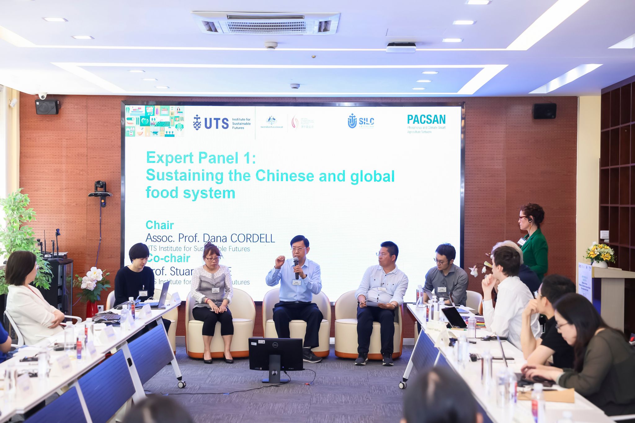 专家小组演讲环节,一系列精彩报告深入探讨了中国食品系统在全球化背景下所面临的可持续性问题和机遇。第一场专家小组报告由Dana Cordell副教授主持,主题为“维持中国和全球食品系统的可持续性”。浙江大学公共管理学院汪笑溪教授探讨了中国食品系统向环境友好、公共健康和包容性转型的必要性和路径;中国农业大学国家农业绿色发展研究院副院长申建波教授强调了中国食品系统中磷使用的风险和可持续性机遇,提出了提高磷使用效率和减少环境污染的可持续管理策略;良食基金执行长侯兵介绍了良食基金如何通过倡导植物为主的饮食和减少食物浪费等行动,推动中国食品系统向更健康和可持续的方向发展;中国人民大学农业与农村发展学院于亢亢教授介绍了温度如何通过情绪影响餐馆食品消费产生的温室气体排放,揭示了环境温度变化对饮食习惯和碳足迹的潜在影响;上海交通大学设计学院副院长陈睿山教授,通过遥感技术和农光互补策略,分析了中国如何在光伏发展与耕地保护之间实现有效平衡。