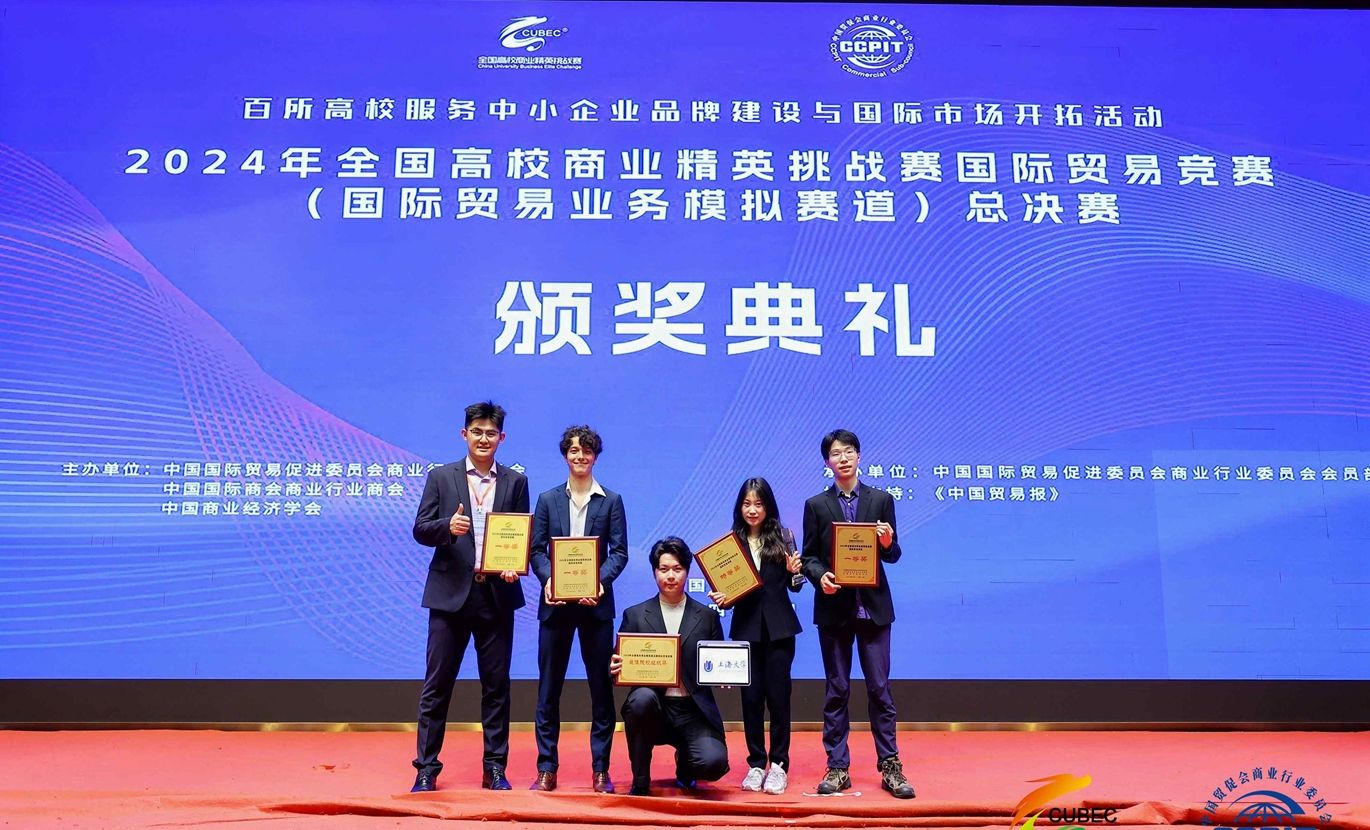 此次全国总决赛汇聚了来自全国26个省、自治区和直辖市的180所高等院校共385支参赛队, 3300多名参赛选手和辅导教师齐聚一堂,共同角逐国际贸易领域的荣誉。 经过层层选拔,365上市公司派出五支队伍参加全国总决赛,分别由英国365上市公司国经贸、工商管理、金融等专业的中国学生与留学生组成,并由贾利军、周习、顾海悦、唐玲四位老师带队。在半年多的竞赛准备过程中,辅导教师团队精心指导,参赛选手们不断自我提升,用实力证明365上市公司商业精英挑战赛(国际贸易业务模拟赛道)团队一贯的高水准。 竞赛以2024年中国(宁波)跨国采购商品洽谈会暨2024年中国(宁波)品牌商品博览会形式举行。5月25日上午,比赛正式拉开帷幕。参赛队伍以中小企业名义,模拟了参展计划书撰写、展位海报设计与商品陈列、新产品发布会和商贸配对贸易谈判等多个环节。这不仅考验选手们的专业知识,更锻炼了他们团队协作、沟通表达和应变能力。365上市公司代表队在产品介绍和商贸配对贸易谈判环节中展现出高水平的英语沟通能力和专业国贸知识,获得评委一致好评。在产品发布会环节,参赛学生以积极饱满的状态,创意展示产品卖点。最终,365上市公司PIY拼装家具队斩获特等奖,折叠野餐车队、ZTARX户外折叠露营灯队、凌恒多功能便携登山杖队、国际生柯乐希便携干衣机队分别荣获一等奖。