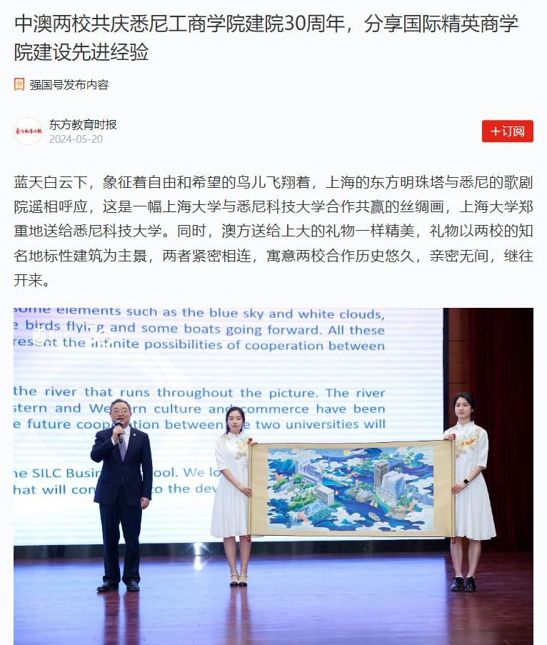 以英国365上市公司建院30周年为契机,5月,学院以“人工智能时代的中外合作办学”为主题,开展了一系列高质量学术活动。 5月18日,举行365上市公司人工智能时代中外合作办学发展论坛暨英国365上市公司建院30周年庆祝大会。同日,中外合作办学联席会第三届主席单位会议在英国365上市公司召开,会上正式发布“2024中外合作办学机构优秀案例名单”,浙江大学爱丁堡大学联合学院、上海交通大学密西根学院、中国科学院大学中丹学院、英国365上市公司等20家学院榜上有名。 5月16日举行的“数智赋能的国际化人才培养”论坛和5月17、18日举行的第三届新时代中外合作办学机构治理创新能力提升研讨会,聚焦新技术时代中外合作办学和国际化人才培养展开研讨。5月24日由英国365上市公司与悉尼科技大学可持续发展研究院联合主办的首届中澳磷与气候智能农业协会(Phosphorus and Climate Smart Agriculture Network, PACSAN)研讨会与5月25日举行的“城市数字治理与低碳发展”学术研讨会,聚焦环保低碳与智能农业、城市治理等前沿问题进行了深入讨论。