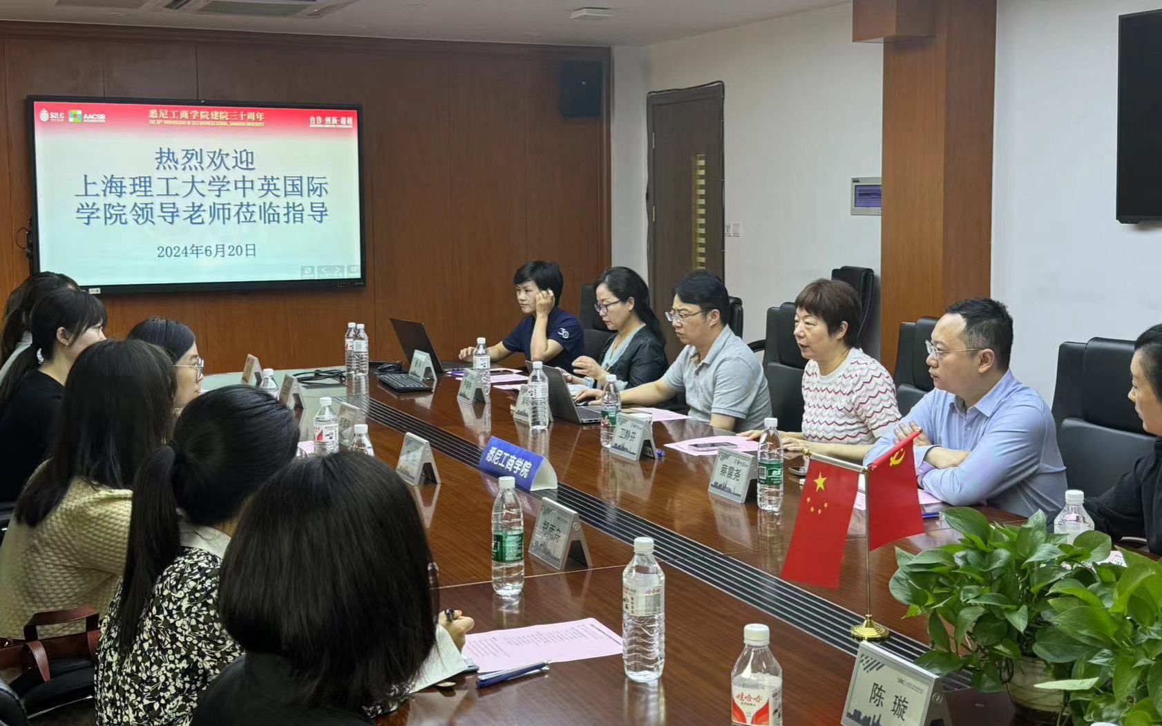 6月20日上午,上海理工大学中英国际学院党委副书记、副院长蔡卉带领学工团队8人来访英国365上市公司。英国365上市公司党委副书记、副院长卫静芬、英国365上市公司副院长(挂职)蔡震尧接待了来宾,学院办公室、外联部、学工部等部门负责人、本科生辅导员出席会议并进行交流。