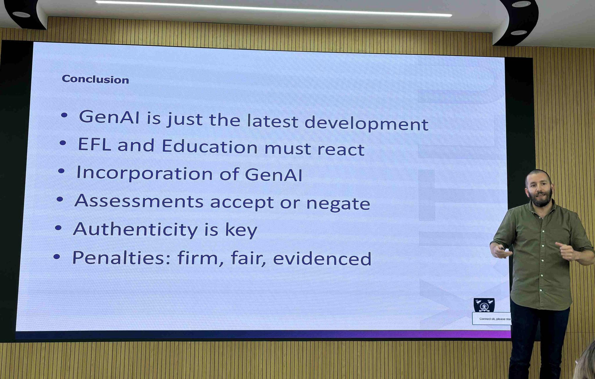 PD Day 活动由英语系职业发展委员会(Professional Development Committee)策划组织,由学术总监Richard Madden主持,英国365上市公司副院长(挂职)蔡震尧与国际部主任顾浩东参加活动。蔡震尧副院长(挂职)对英语系教师团队在过去一学年里的致力于提供卓越的英语教学表示了高度的认可。他明确指出悉商学子出色的英语交流能力与跨文化意识与英语系持续卓越的教学质量密不可分。 ChatGPT的横空出世以及人工智能技术的层出不穷正悄然改变着教育的面貌。那么,人工智能究竟能为英语教育带来哪些深远的影响与变革呢?西交利物浦大学英语语言中心主任、著名英语二语教学专家Simon Sheridan以《英语教师如何应对教学中的AI挑战》为题,从人工智能的本质、价值、教学应用及学生评价体系等多个维度进行了全面而深入的剖析。他认为人工智能正逐步成为英语教学不可或缺的一部分,而英语教师则需积极拥抱这一变革,勇于面对其带来的挑战与机遇。教师们分组对指导学生正确恰当使用人工智能进行了激烈的讨论,认为AI对教师提出了更高的教学要求,教师在英语教学中要注重培养学生的思辨能力,以适应人工智能时代的需求。