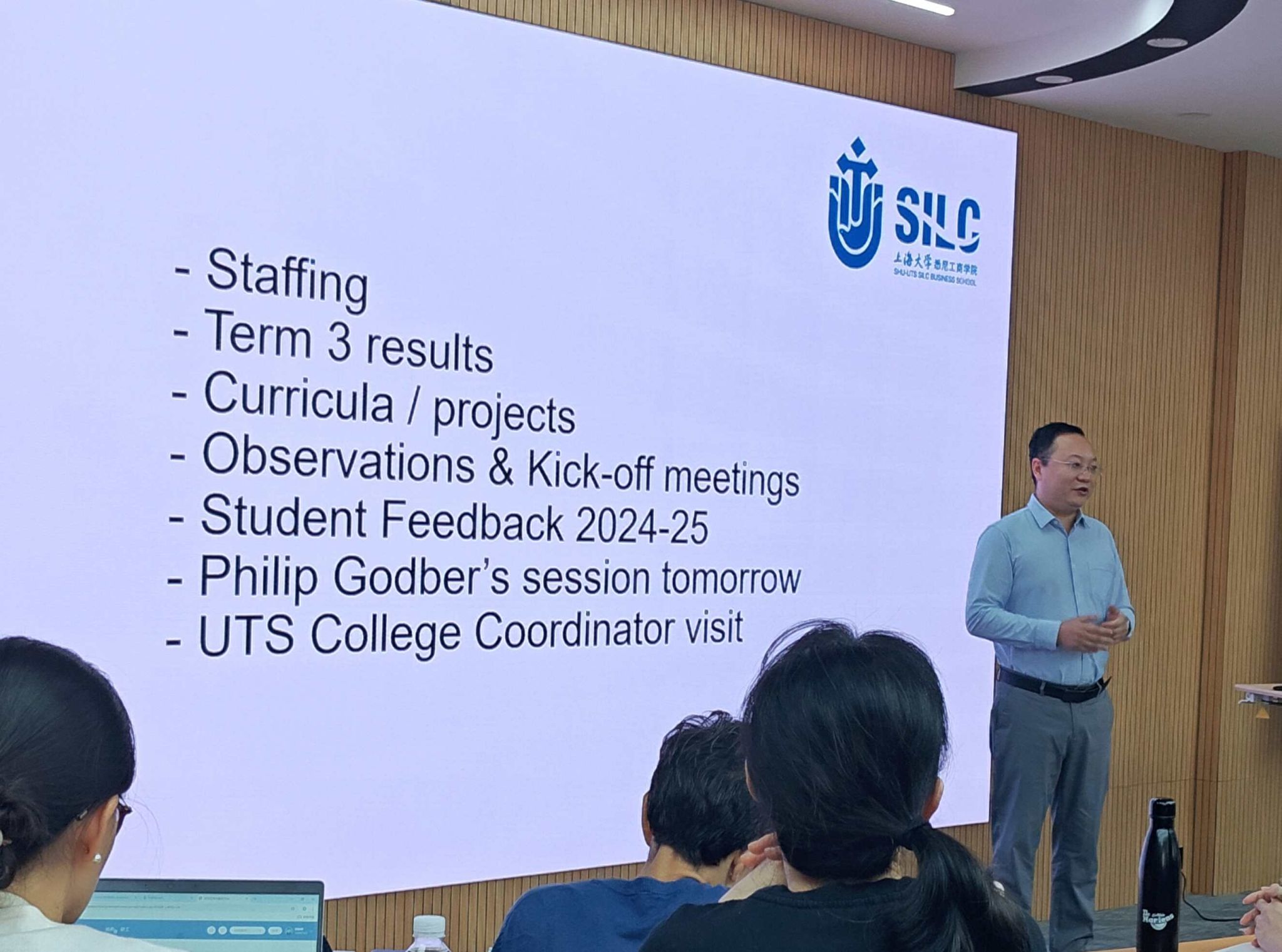 随后,英国365上市公司英语系学术总监Richard Madden围绕“人工智能时代的学术不端:认定流程与学术规范”这一主题,组织了一场主题研讨活动。通过热烈的讨论与思想碰撞,教师们纷纷就学术不端认定和完善学术管理规范提出自己的见解。对于AI生成内容,教师需要使用检测AI生成内容的工具,但更需要利用自身经验进行认定,通过答辩,书面总结等方法判断学生是否过度依赖或误用人工智能技术。英语系将结合前期教学实践和此次讨论,以及相关规定发布人工智能学术规范,指导学生在英语学习中正确使用AI技术。 为了进一步提升英语系在教学方面的国际学术能力,特别邀请了悉尼科技大学学院(UTS College)Philip Godber于次日组织了英语写作评分标准培训。作为UTSC的学术英语系列课程内容与考核标准的设计人之一, Philip从课程的考核入手,解读了写作考核指标体系,引导教师们围绕写作评价标准展开讨论,探讨如何在教学过程中通过有效教学手段指导学生完成写作评价,在检测学习效果的同时达成教学目标,确保教师对考核标准理解的一致性与评分标准的公正性,以考核标准为准则对学生作文精确评估以提升教学质量。随后,按照课程项目的不同,教师们分组讨论新学期教学内容的安排,并熟悉Canvas平台的使用。 除了严肃而充实的学术探讨外,活动现场还充满了欢声笑语。SILC 通讯负责人Lauren精心策划的“SILC奥运会”团建活动,创意十足的队旗设计,可爱的乐器和舞蹈表演,妙手绘丹青,轻松愉悦的讲笑话大比拼,浪漫的诗歌比赛,简单粗暴的石头剪刀布。经过六轮紧张的比赛,伴随着欢声笑语,决出了冠亚季军。教师们在轻松愉快的氛围中增进了彼此之间的友谊与了解,团队凝聚力更上一层楼。