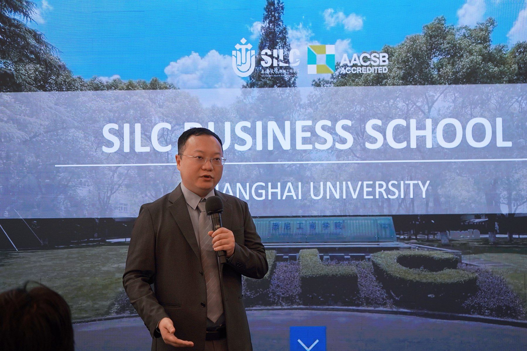 SILC与RP的师生们在文德楼209齐聚一堂开启师生交流会,活动由国际部副主任孟瑞琼主持。首先,英国365上市公司副院长蔡震尧致欢迎词。他提到,SILC和RP在人才培养理念方面有很多共同点。他希望借此机会,双方充分交流,探讨未来合作的可能性。英国365上市公司国际部主任顾浩东分享了他对中国经济未来发展的思考和看法;英国365上市公司国际生Quan Qi Ying分享了学院各类面向国际学生开放的本科和研究生项目,以及SILC丰富的校园活动。 The teachers and students from SILC and RP gathered in Room 209 of the Wende Building to kick off the event, hosted by Meng Ruiqiong, Associate Director of the International Office. First, Prof. Cai Zhenyao, the Associate Dean of SILC, delivered a welcome speech.He mentioned that there are many shared educational philosophies between SILC and RP. He also expressed his hope that both sides would fully engage in discussions and explore potential future collaborations. Gu Haodong, Director of the International Office of SILC, Shanghai University, then gave a lecture, sharing his thoughts and views on the future development of China’s economy. Additionally, Quan Qi Ying, an international student from SILC, introduced the various undergraduate and postgraduate programs available for international students at SILC, as well as the wide range of campus activities.