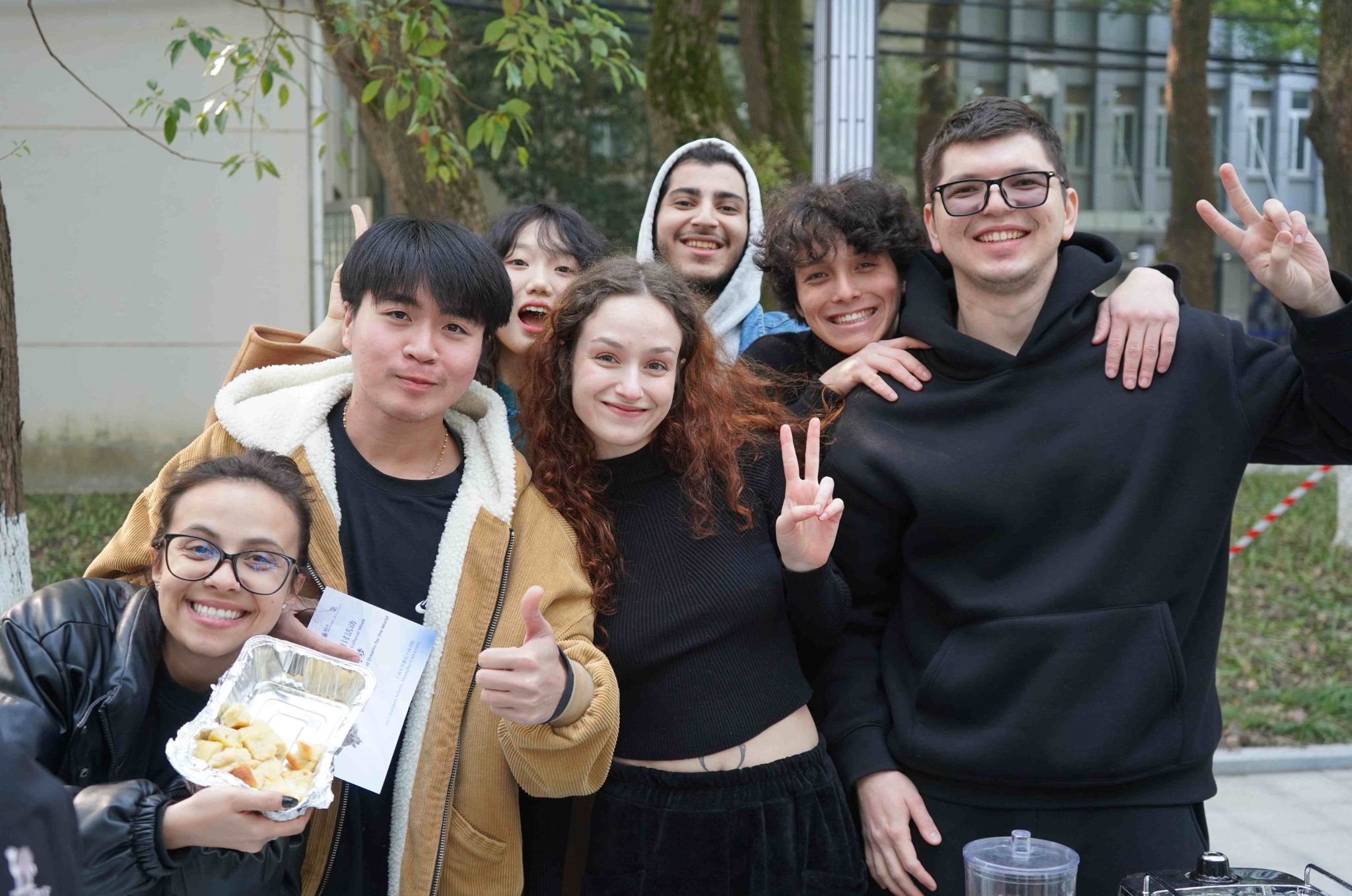 12月6日,作为训练营最终展示活动的游园会如约而至。这一天,校园仿佛变成了一个微缩的“世界村”,来自中国、日本、泰国、印尼、俄罗斯、意大利等9个国家的同学们纷纷设置了特色展台,展示国别文化。 On December 6th, the Cross-Cultural Training Day and International Cultural Festival began, transforming the campus into a miniature "global village." Students from China, Japan, Thailand, Indonesia, Russia, Italy and other countries presented their own country booths. 中国展台展示了香囊制作与围炉煮茶活动;马来西亚展台准备了马来西亚咖喱鸡肉饭;俄罗斯展台带来了套娃、俄罗斯方块等游戏,以及传统舞蹈和歌曲表演;意大利展台举行了制作披萨和意大利面的活动,同学们还欣赏到了意大利歌剧的经典片段。各国同学们不仅带来了各自国家的特色美食、小游戏和手工艺品,还通过互动交流,让参与者更好地了解了世界文化和沟通方式。 The Chinese booth's sachet making and tea brewing activities around a stove activity offer the participants a glimpse of Chinese cultural traditions. Malaysia booth served Malaysian curry chicken rice to showcase the traditional Malaysian cuisine. The Russian booth brought traditional elements such as matryoshka dolls and Tetris, as well as traditional dance and song performances. The Italian booth provided pizza-making and pasta-making activities when participants are enjoying the classic excerpts of Italian opera. At the festival, students from different countries not only presented their own special delicacies, full games and intricate handicrafts, but also engaged in interactive exchanges, allowing participants better understand world cultures and communication styles.