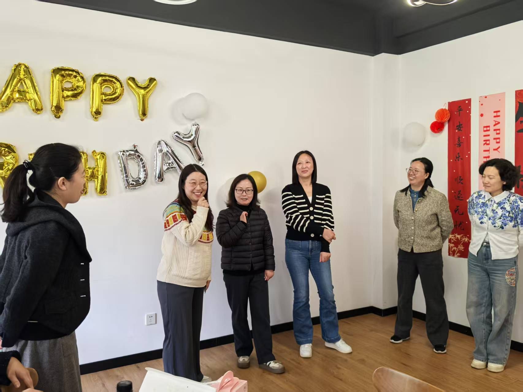 本次生日会由学院党委精心指导,学院分工会全力承办,工会委员们积极参与其中。活动筹备阶段,学院工会便充分发挥创意,精心布置现场,色彩斑斓的气球、随风飘舞的彩带,巧妙融入的国际化元素,营造出喜庆而温馨的氛围,香甜可口的生日蛋糕和精致丰富的茶歇点心也一应俱全,为大家带来了一场视觉与味觉的双重盛宴。