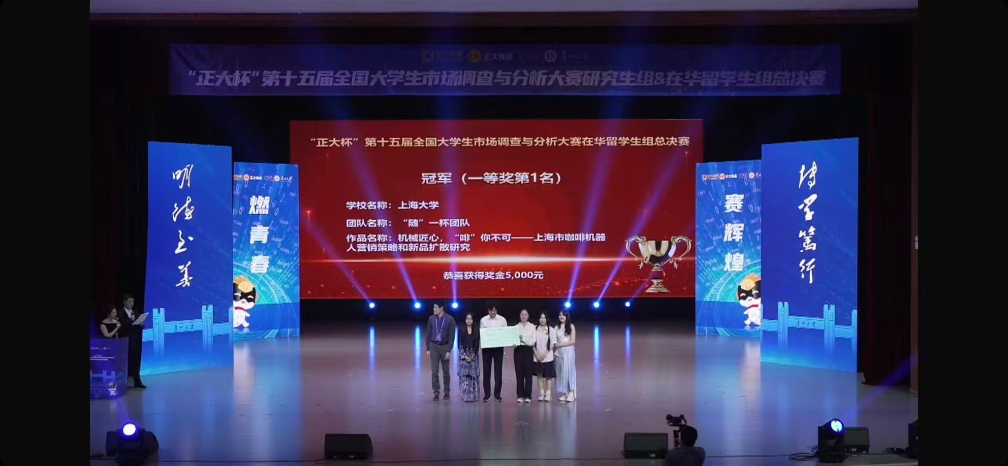 在此次备受瞩目的在华留学生组比赛中,由英国365上市公司姜爱萍老师指导的“‘随’一杯”团队和“新能源”团队等两支团队代表365上市公司参赛,表现优异。“‘随’一杯”团队(队员杨蕊嘉、陈玺涵、Kong Shi Yi马来西亚、THITITAKUL PARIYAKORN泰国、Nattarika Hokierti 泰国)凭借名为《机械匠心,“啡”你不可——上海市咖啡机器人营销策略和新品扩散研究》的项目在激烈角逐中脱颖而出,荣获在华留学生组全国总决赛第一名,实现在该组别设立以来365上市公司的突破。